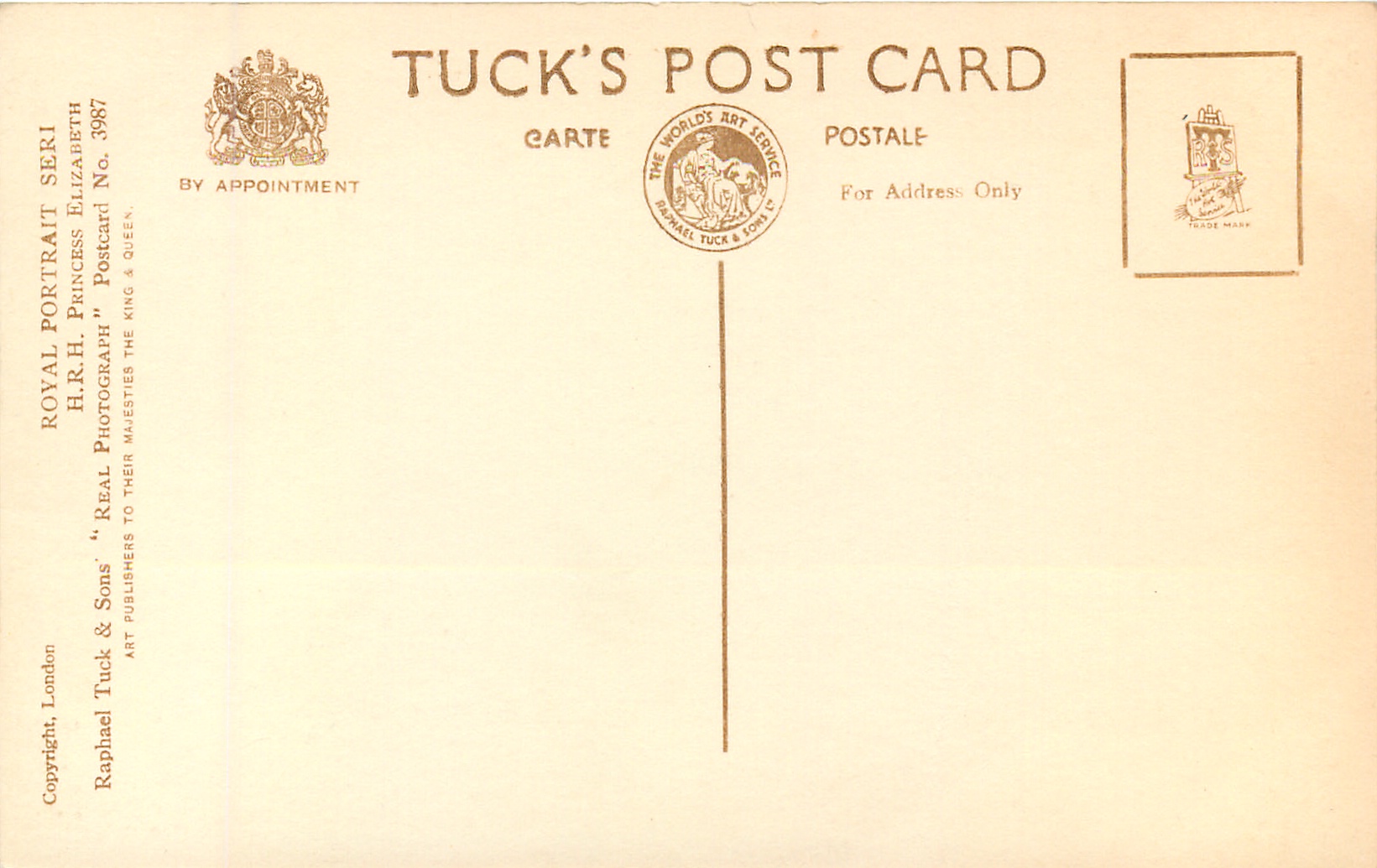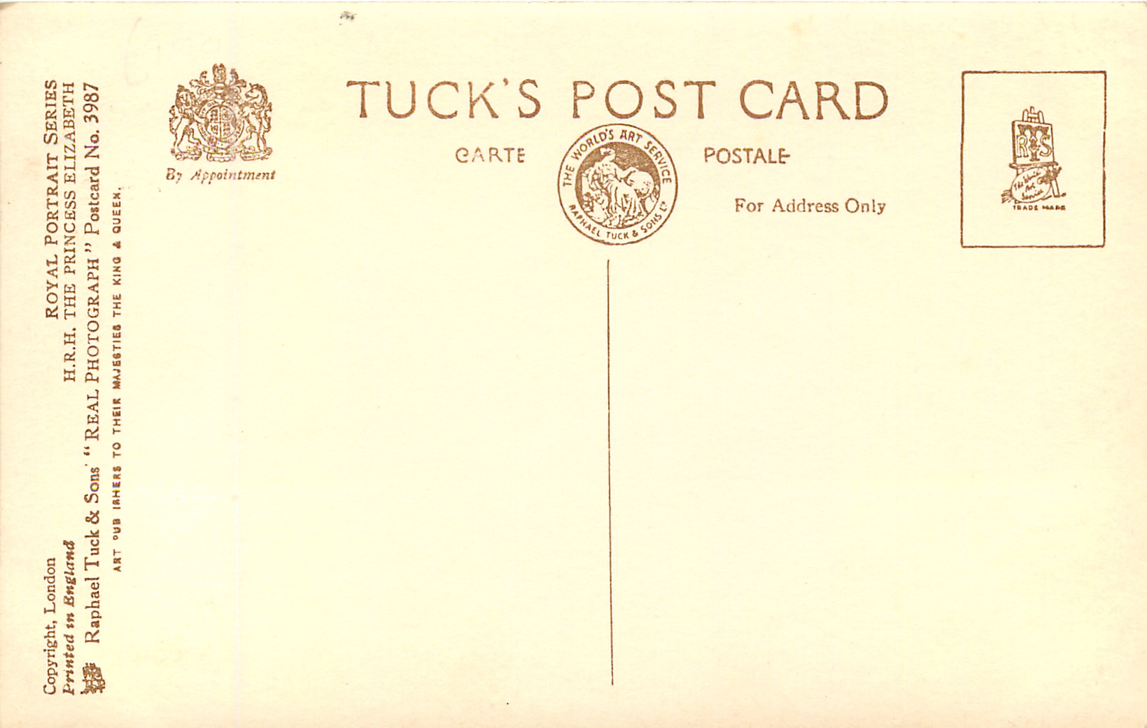 REAL PHOTOGRAPH, PRINTED IN ENGLAND, COPYRIGHT LONDON, listed in 1930 POSTCARD Catalogue, 2 backs