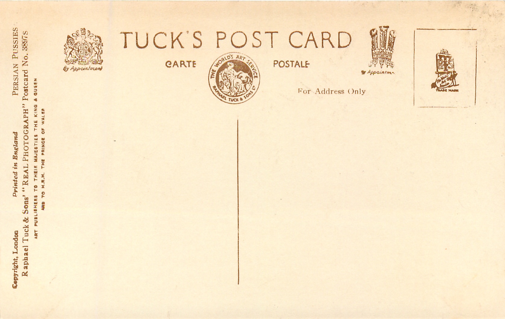 REAL PHOTOGRAPH, PRINTED IN ENGLAND, COPYRIGHT LONDON, comes also with A PERSIAN PUSSY in the set title position, packet number 608, comes with card letters, 2 backs
