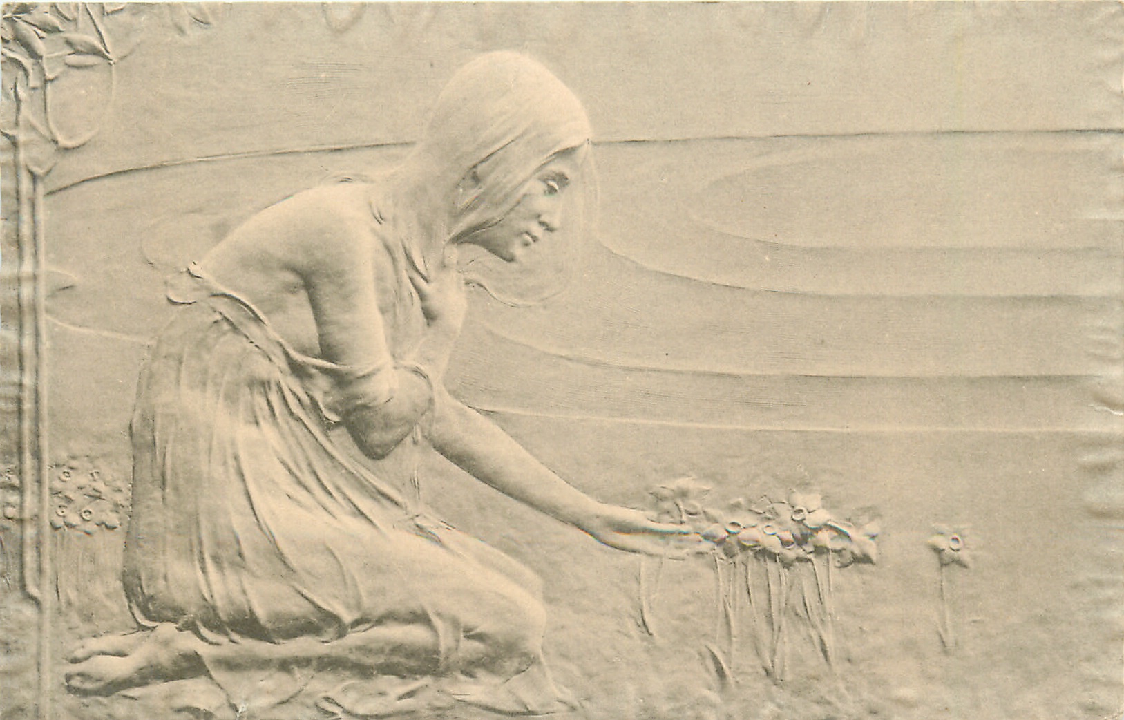 bas relief (nouveau) in the style of Raphael Kirchner (4005)