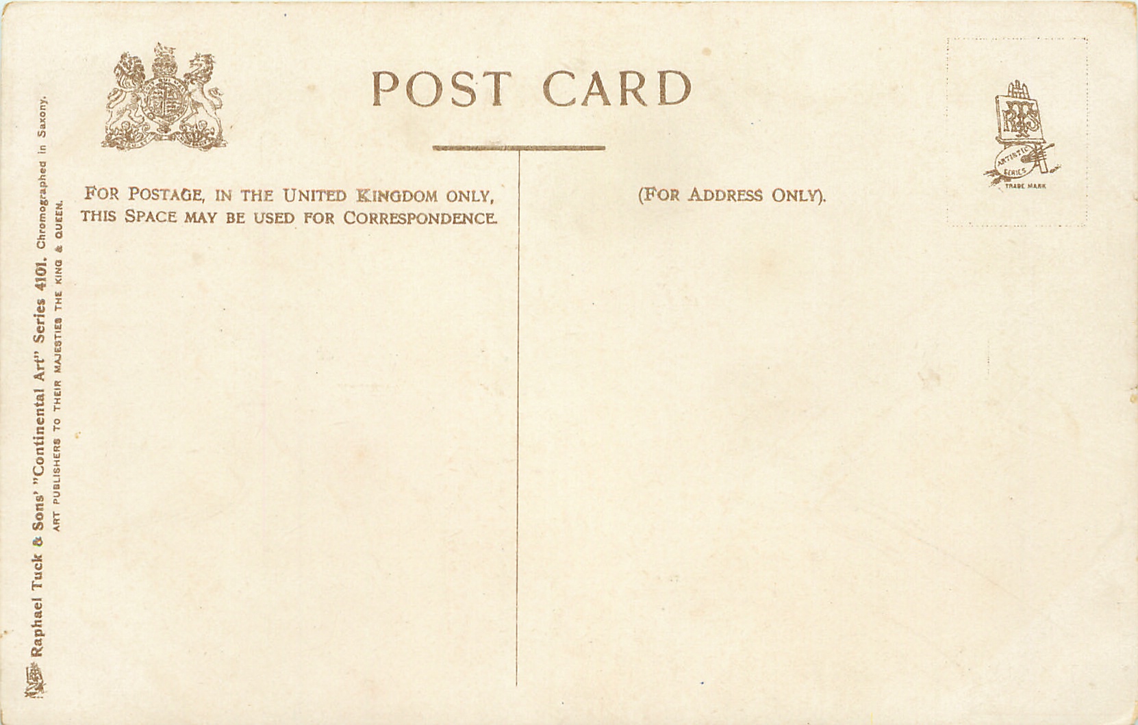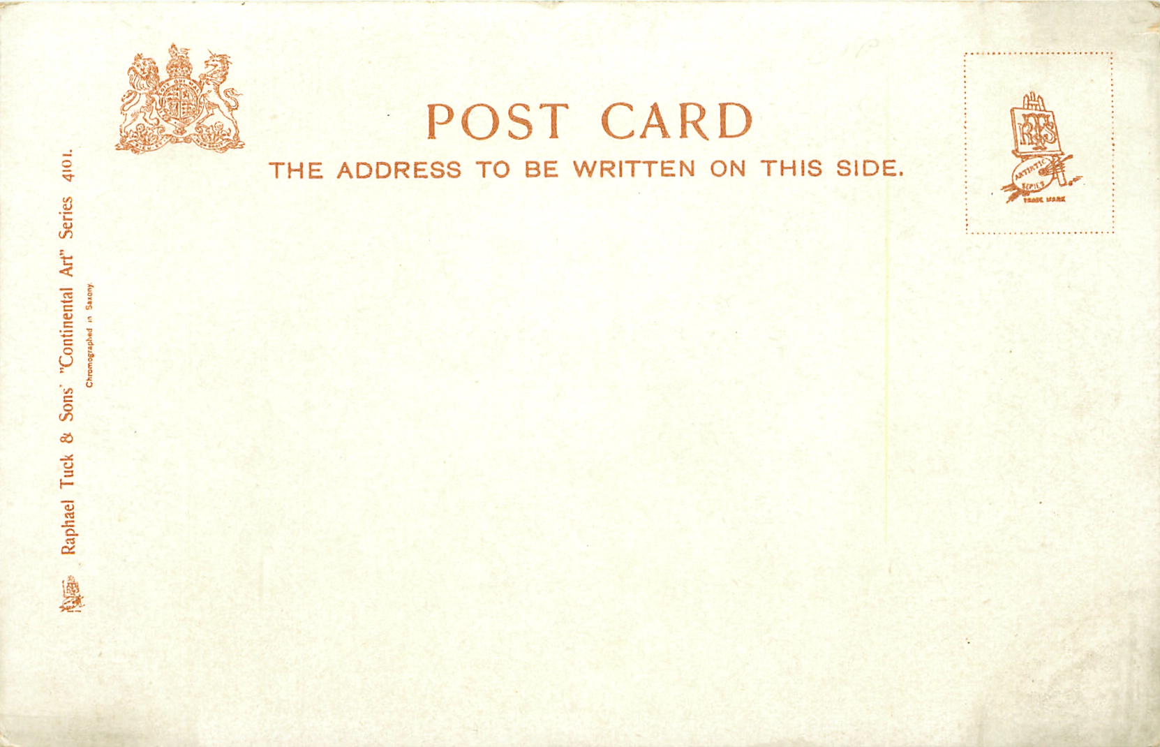 CONTINENTAL ART, CHROMOGRAPHED IN SAXONY, listed in 1904 POSTCARD Catalogue, 2 backs