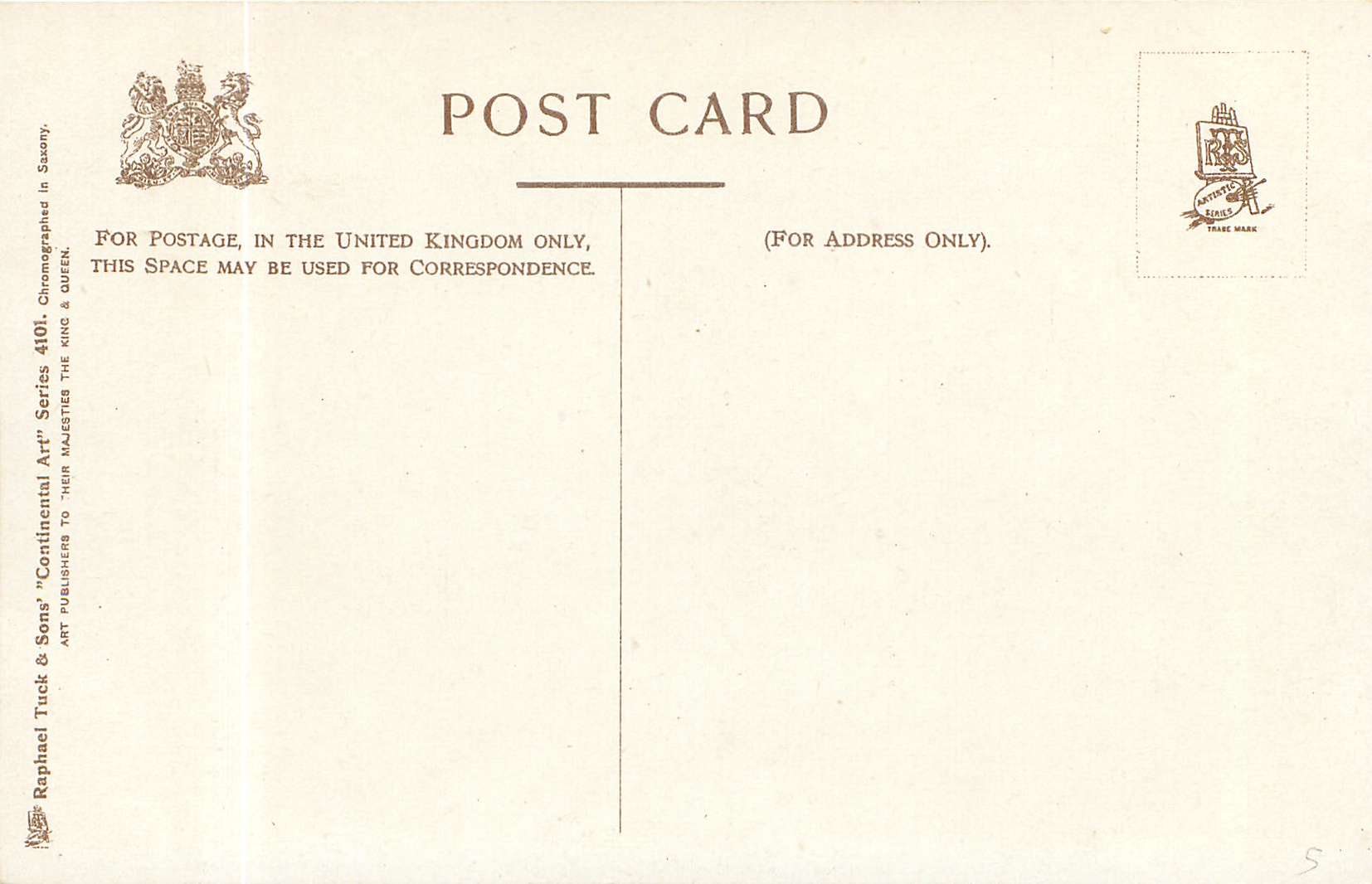 CONTINENTAL ART, CHROMOGRAPHED IN SAXONY, listed in 1904 POSTCARD Catalogue, 2 backs