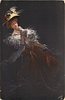 woman stands, leaning backwards, her right hand touches right side of her face