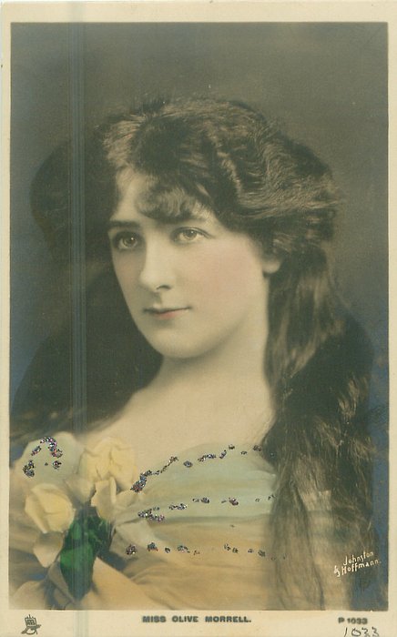 hand-coloured & glittered Olive Morrell (London- ) was Poppy in "San Toy" Daly's Th. London 1899-1900 (768); Was in "The Catch of the Season" Musical Comedy 1904-06 (621)