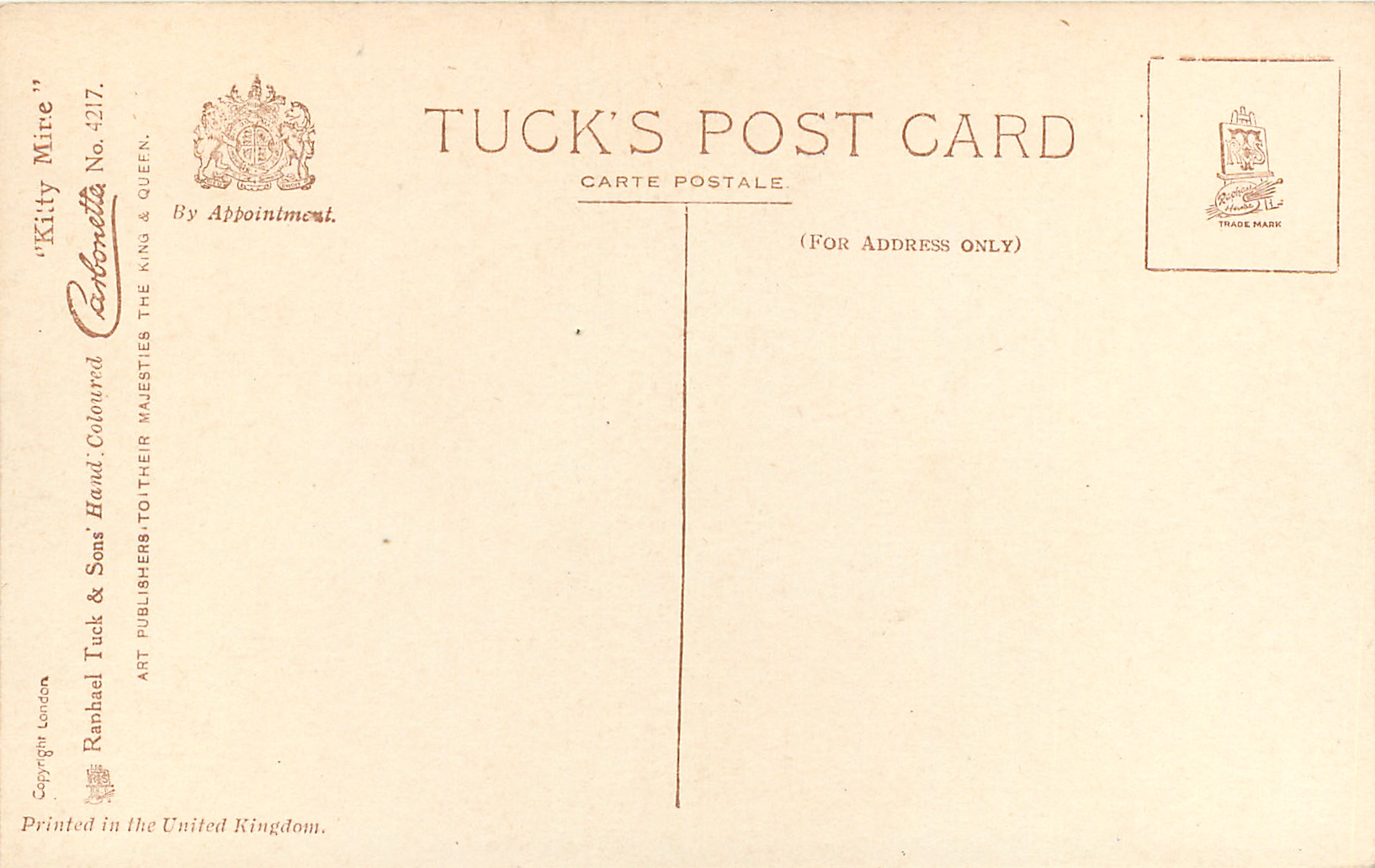 HAND COLOURED CARBONETTE, for same image not HAND COLOURED see 4563, PRINTED IN ENGLAND or PRINTED IN THE UNITED KINGDOM with or w/o COPYRIGHT LONDON