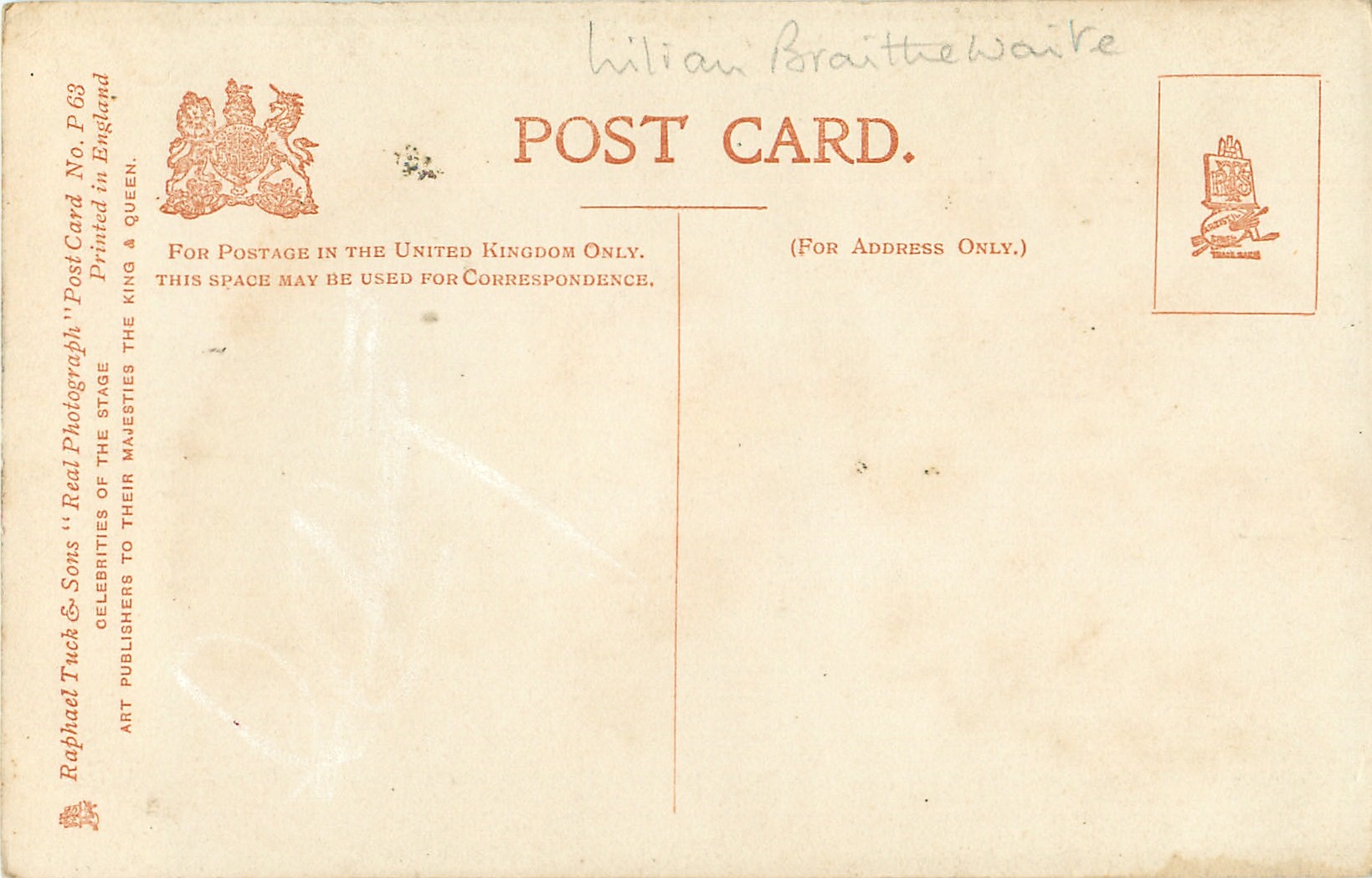 PHOTO BASSANO, 2 backs, glittered, hand-coloured same image G63 Lilian Braithwaite 1873 Eng.-1948 London) in "Preserving Mr. Panmore" Comedy Th. London 1911