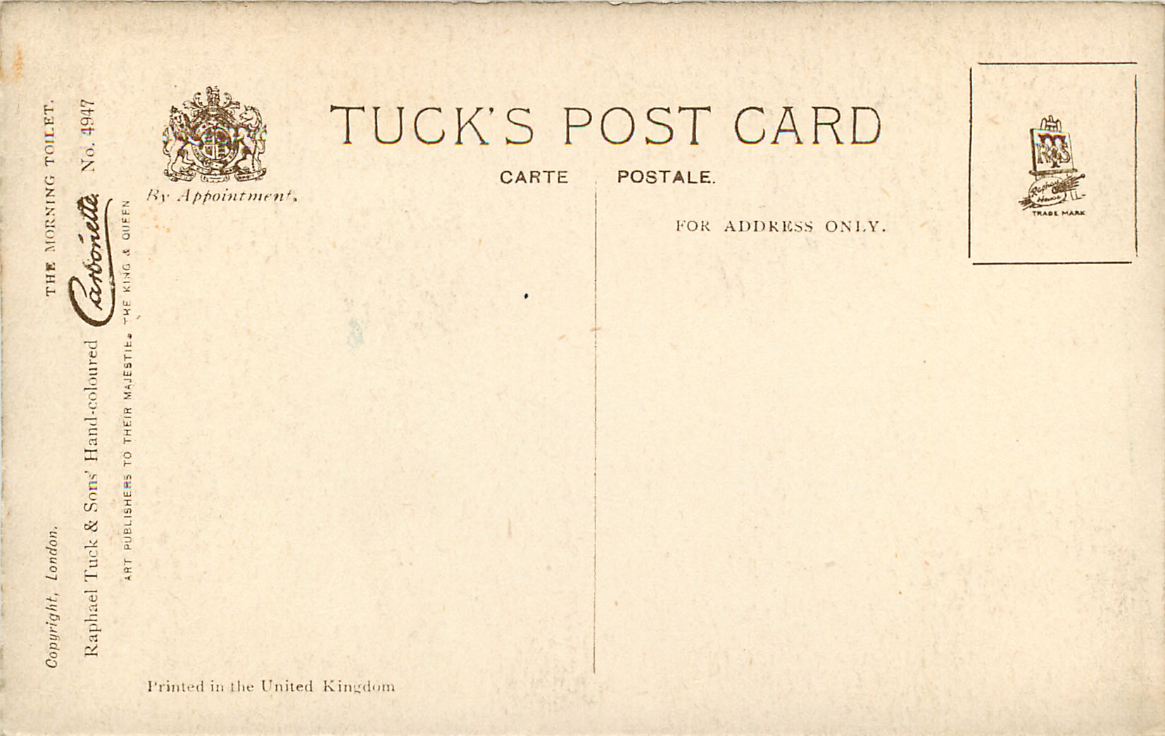 HAND COLOURED CARBONETTE, PRINTED IN THE UNITED KINGDOM, COPYRIGHT LONDON, for same images CARBONETTE see 4977