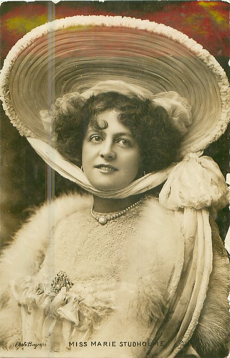 PHOTO BIOGRAPH, half length study, wears enormous hat, faces slightly left, looks front & up, same image P331