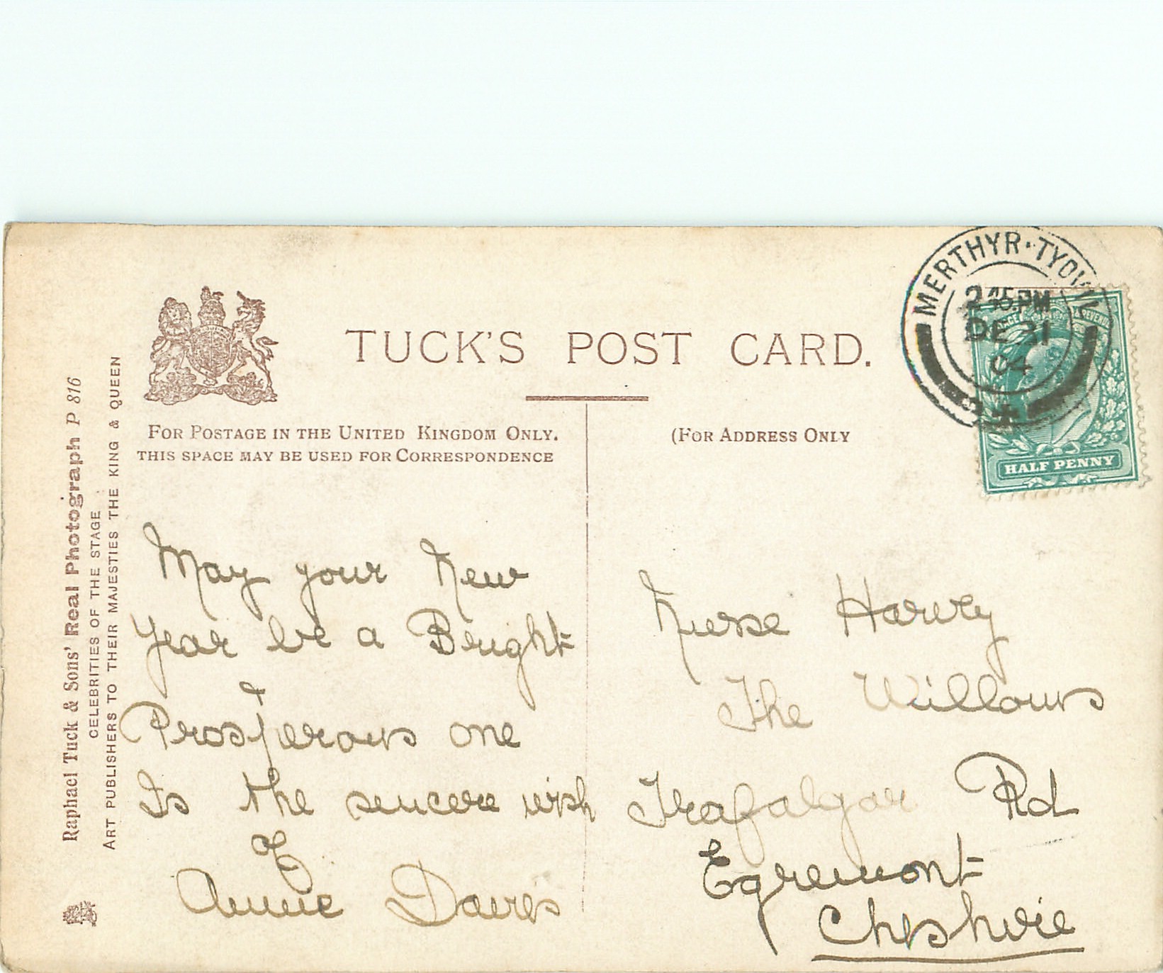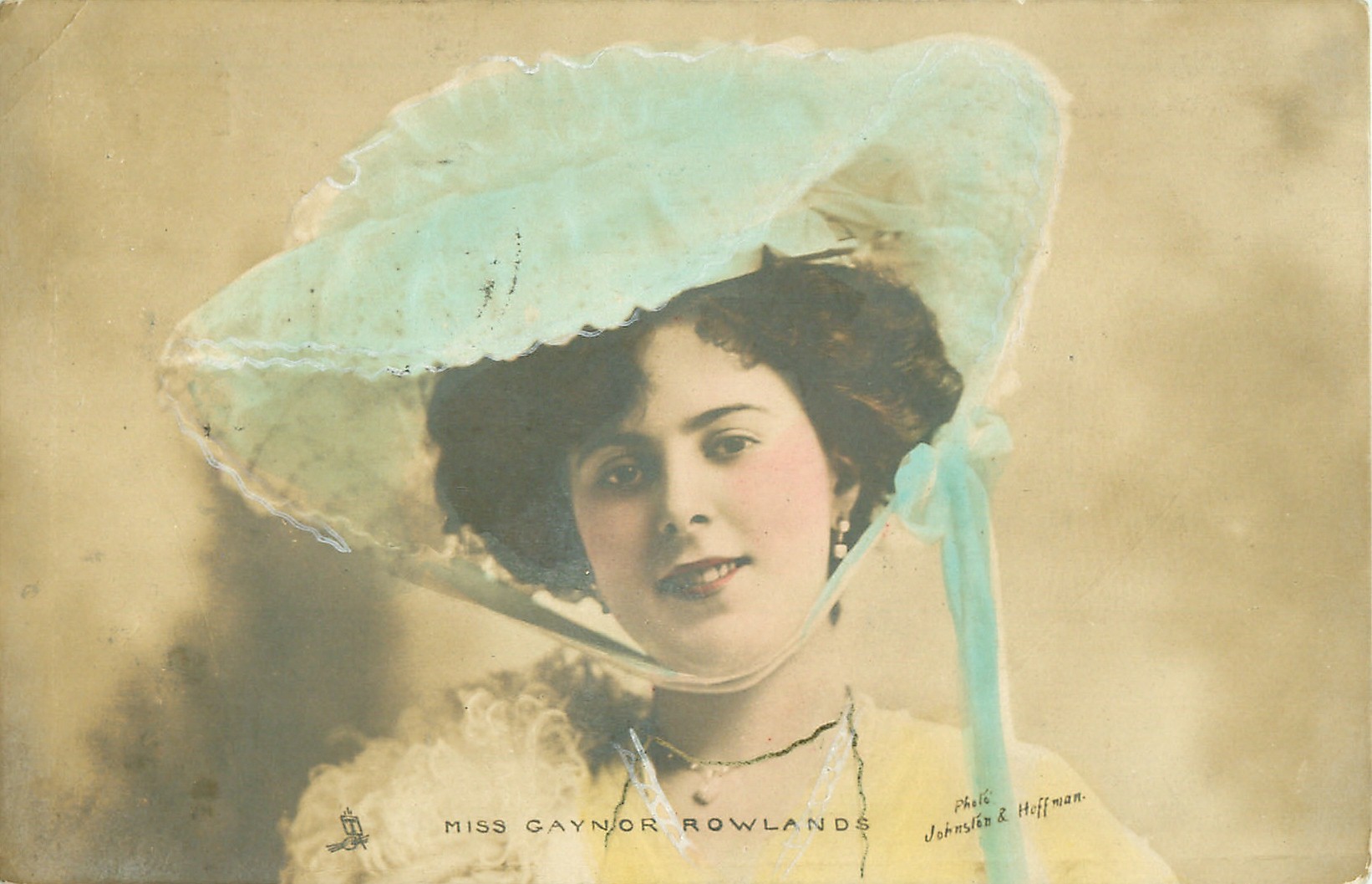 PHOTO JOHNSTON & HOFFMAN, hand-coloured, same image G816 Gaynor Rowlands (1883 London-1906 London) Gaiety Girl ,Singer, Dancer, was one of Visitors in "The Toreador " Musical Play Gaiety Th. London 1901