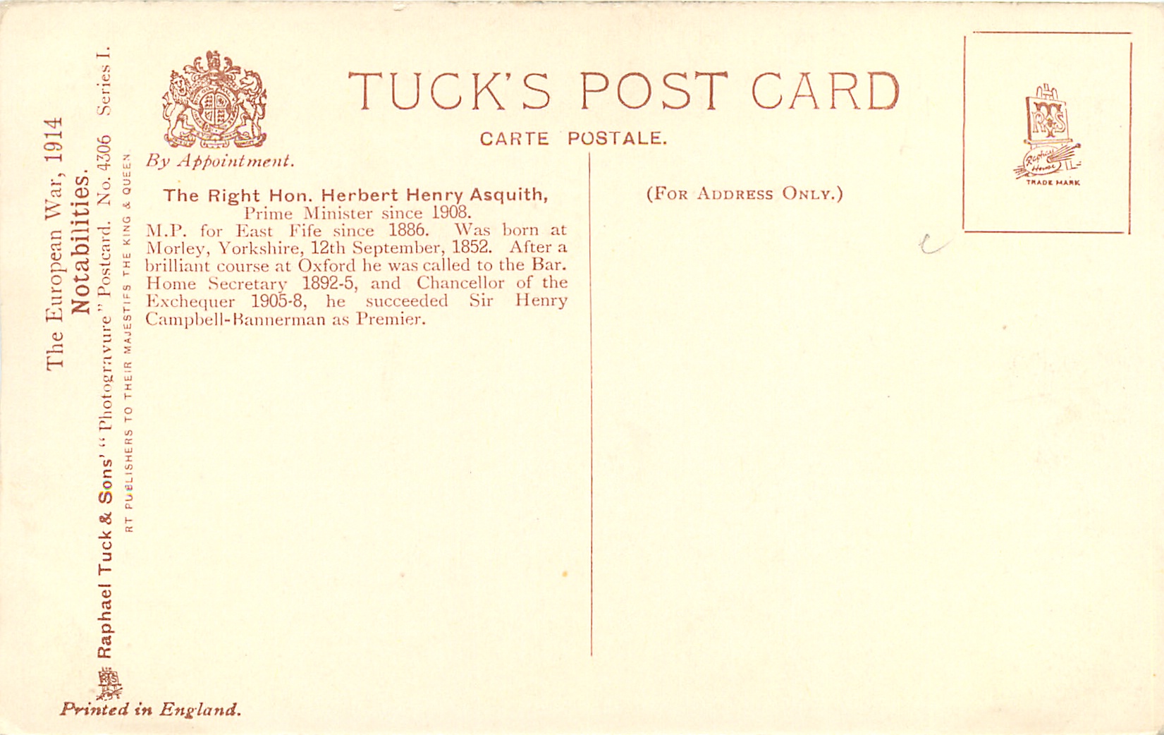 RT HON. HERBERT HENRY ASQUITH, THE, PRIME MINISTER