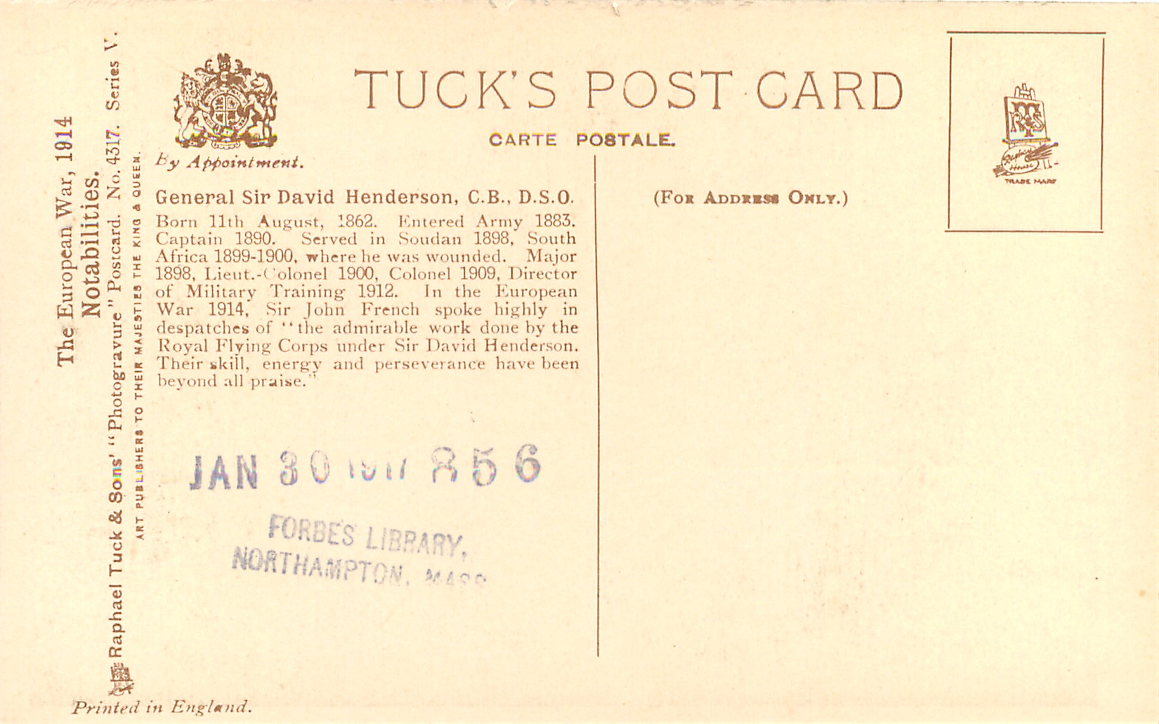 GENERAL SIR DAVID HENDERSON, C.B.,D.S.O.,IN COMMAND OF THE ROYAL FLYING CORPS