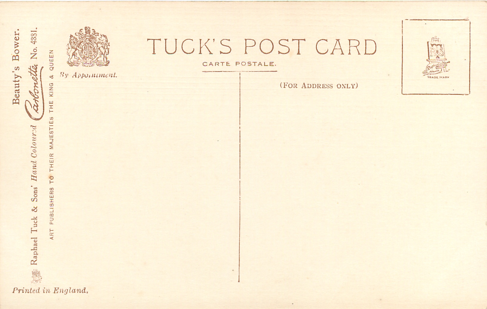 HAND COLOURED CARBONETTE, for same image not HAND COLOURED see 4639, PRINTED IN ENGLAND