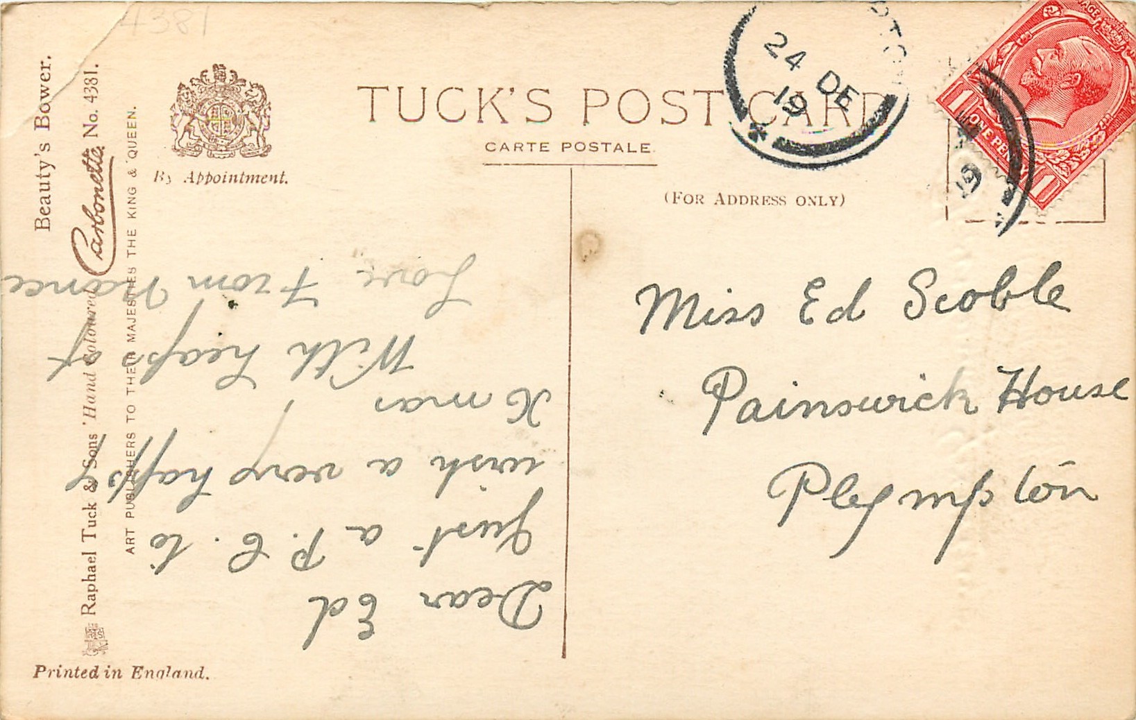 HAND COLOURED CARBONETTE, for same image not HAND COLOURED see 4639, PRINTED IN ENGLAND