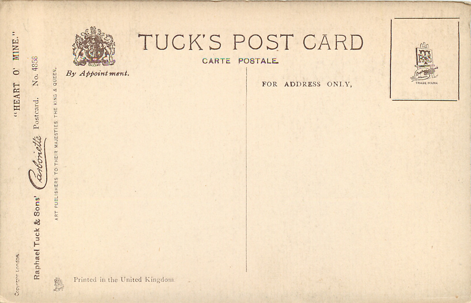 CARBONETTE, PRINTED IN THE UNITED KINGDOM, COPYRIGHT LONDON, shades of grey, for same images HAND COLOURED CARBONETTE see 4808