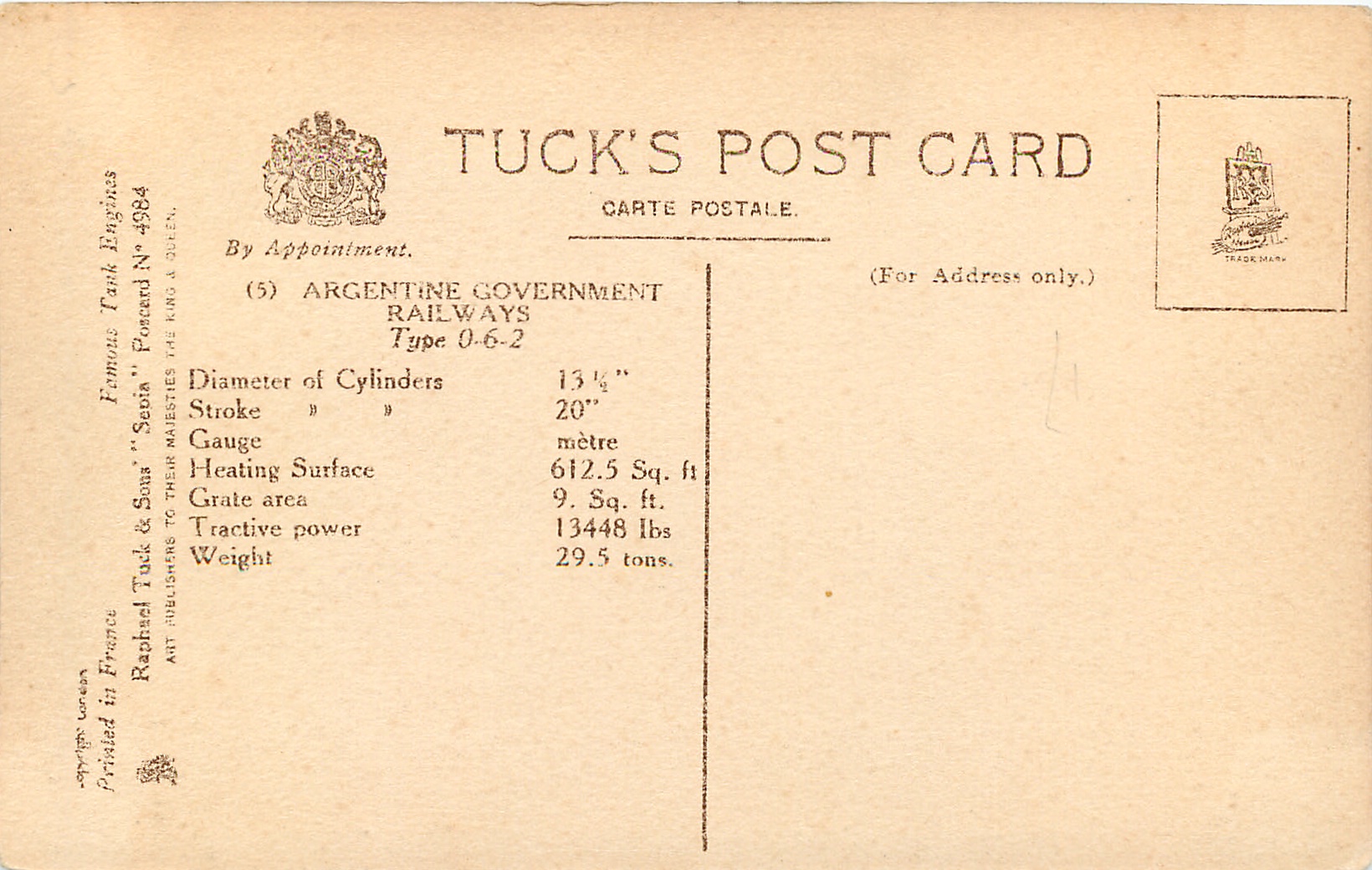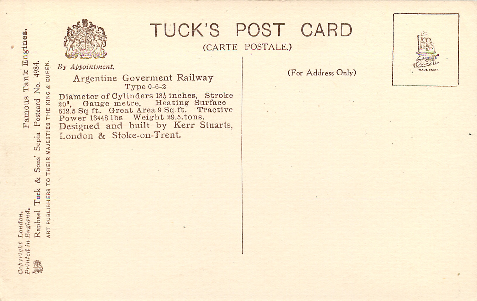 ARGENTINE GOVERNMENT RAILWAY TANK ENGINE BUILT BY KERR STUARTS