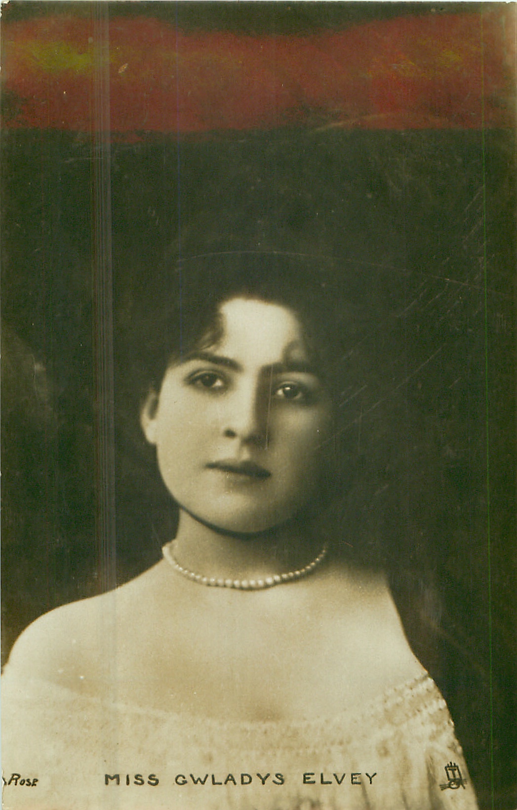 MISS GWLADYS ELVEY head & shoulders, off shoulder dress,