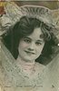 MISS GERTIE MILLAR head & shoulder study, facing front looking front, much lace and cloth hat