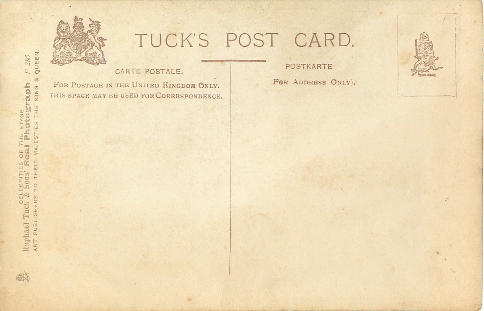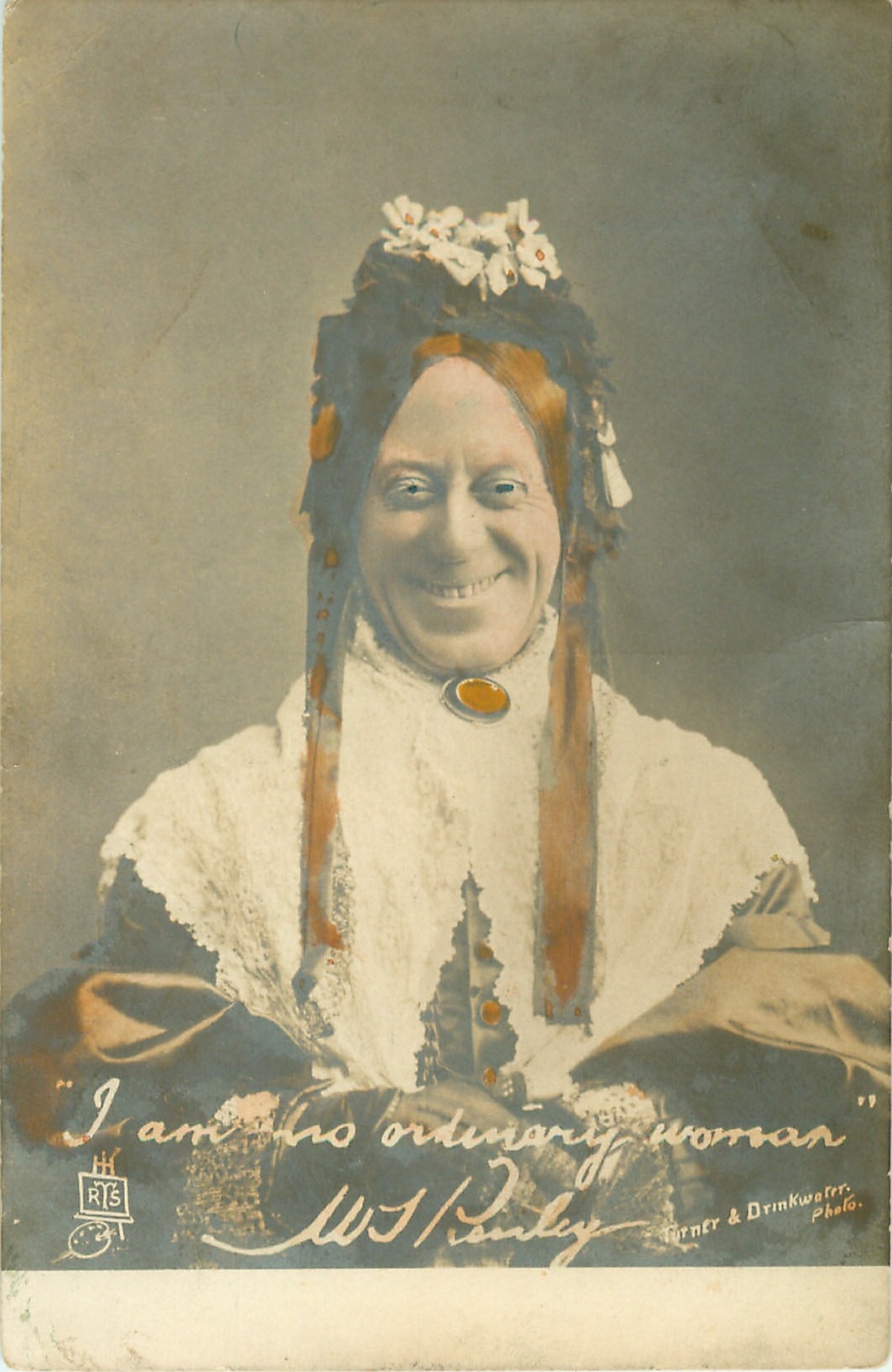 TURNER & DRINKWATER PHOTO faux "signature", cross dressed, hand coloured, same image 1044, 5002 W.S. Penley (1851 Eng.-1912) In "Charley's Aunt" Royalty Th. 1892 & then to Globe Th.London 1892,1893 (1466). He retired from Stage 1901.