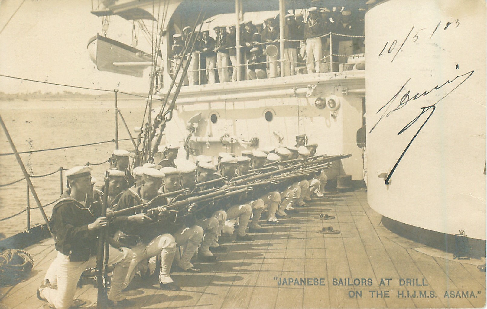 "JAPANESE SAILORS AT DRILL ON THE H.I.J.M.S. ASAMA."