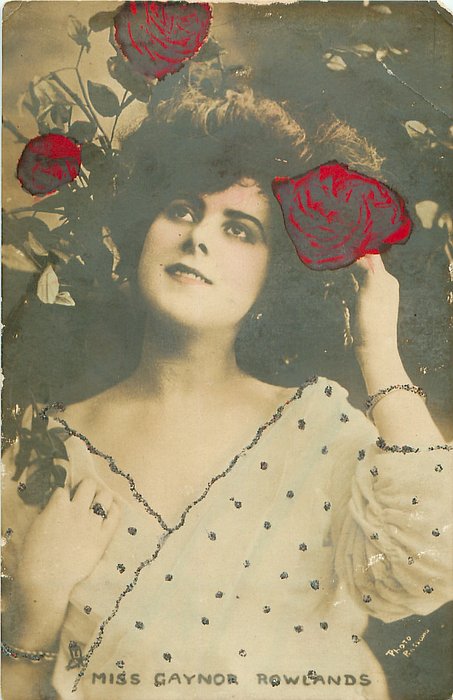 PHOTO BASSANO, hand-coloured & glittered, same image G862 Gaynor Rowlands Actress, Singer, Dancer (1883 London-1906 London) was Henri in "La Poupee" Prince of Wales Th. London;