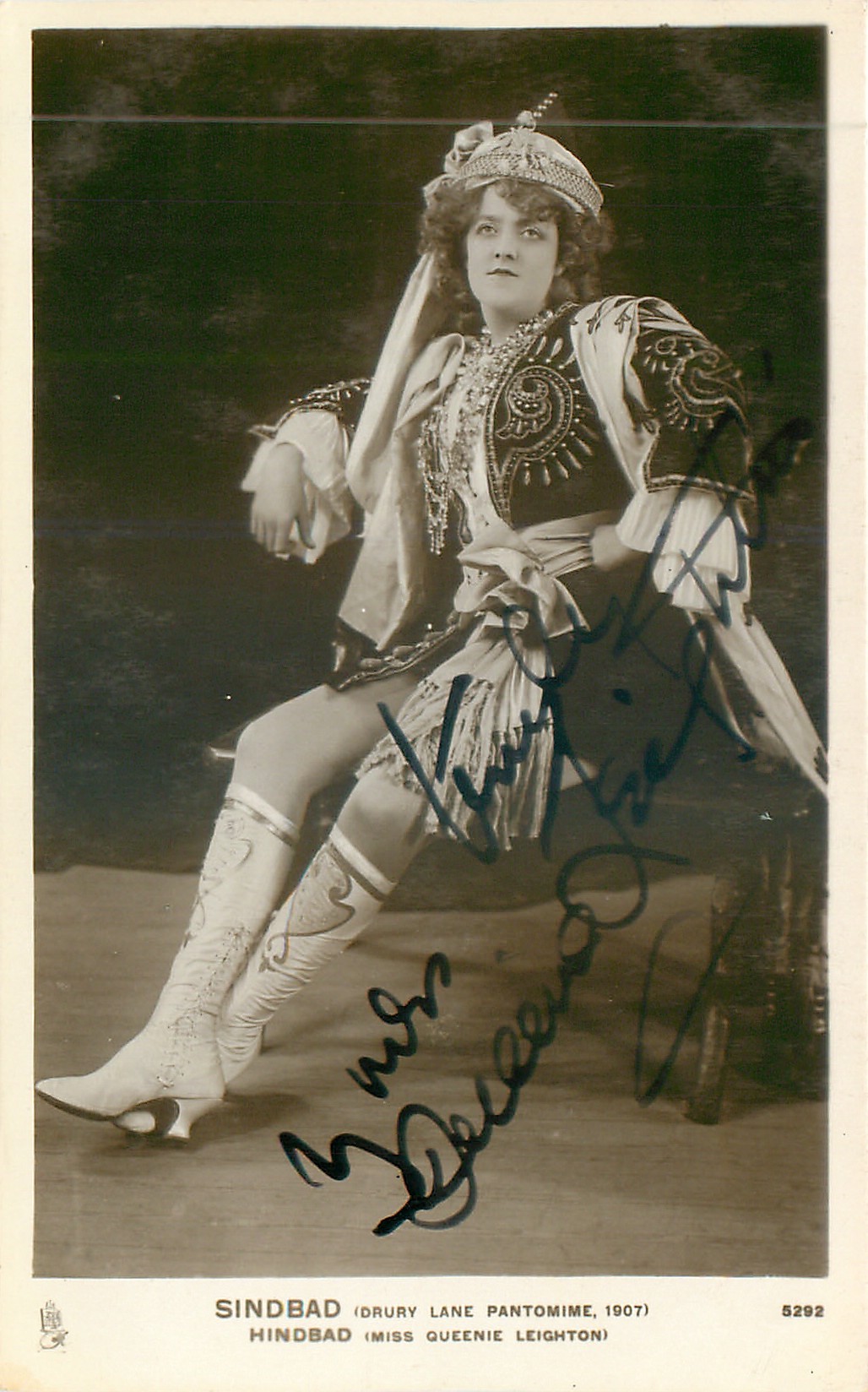 with real autograph, PHOTO DOVER STREET STUDIOS Queenie Leighton was Leading Boy as "Sindbad" Royal Drury Th. London 1906 (128)