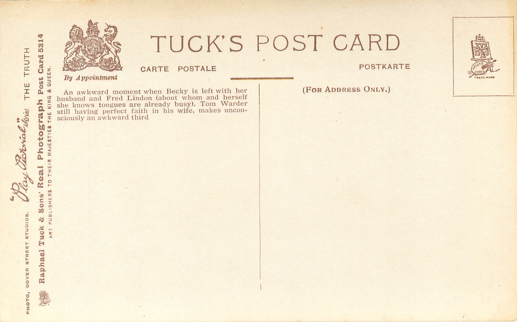 BECKY WARDER (MISS MARIE TEMPEST), TOM WARDER (MR. ALLAN AYNESWORTH) & FREDERICK LINDON (MR. DAWSON MILYARD), LONDON - "I HEAR EVE'S LOOKING VERY WELL."