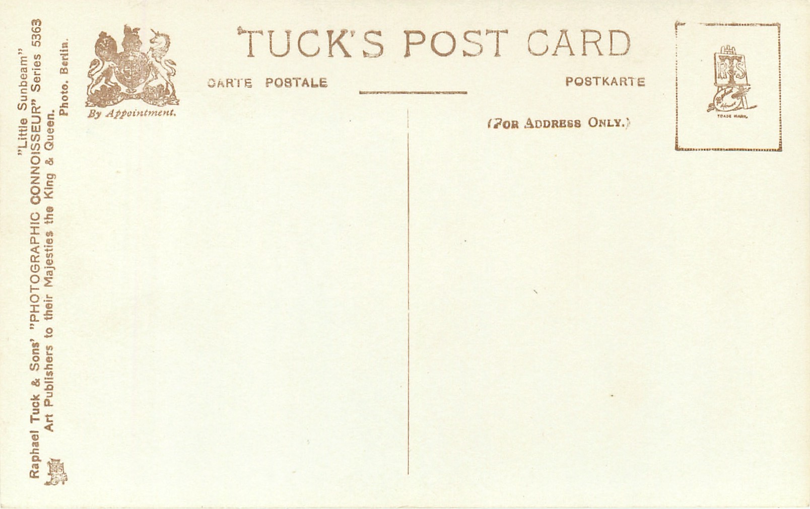REAL PHOTOGRAPH or PHOTOGRAPHIC CONNOISSEUR, 3 backs, PHOTO BERLIN, listed in 1911/1912 Postcard Catalogue