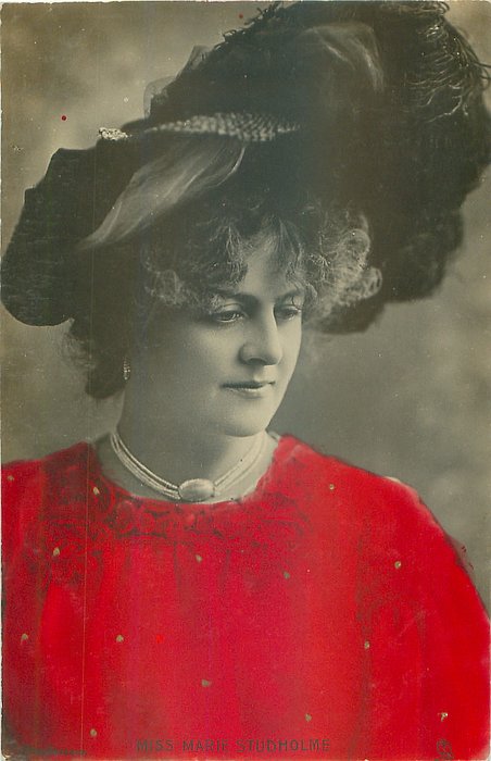 PHOTO BASSANO, head & shoulders, facing front high neck dress with much lace, looks front & down, come hand-coloured, same image P155 Marie Studholme (1872-1930) was Miss Glady's In "A Gaiety Girl" Musical Comedy ,Prince of Wales Th. London 1893 then to Daly's Th. (413)