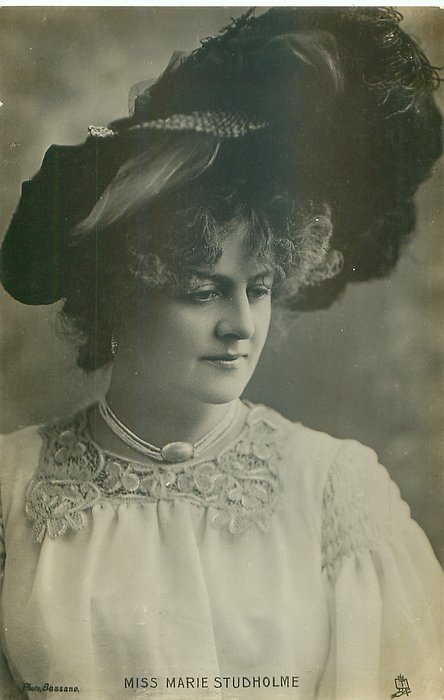 PHOTO BASSANO, head & shoulders, facing front high neck dress with much lace, looks front & down, come hand-coloured, same image P155 Marie Studholme (1872-1930) was Miss Glady's In "A Gaiety Girl" Musical Comedy ,Prince of Wales Th. London 1893 then to Daly's Th. (413)