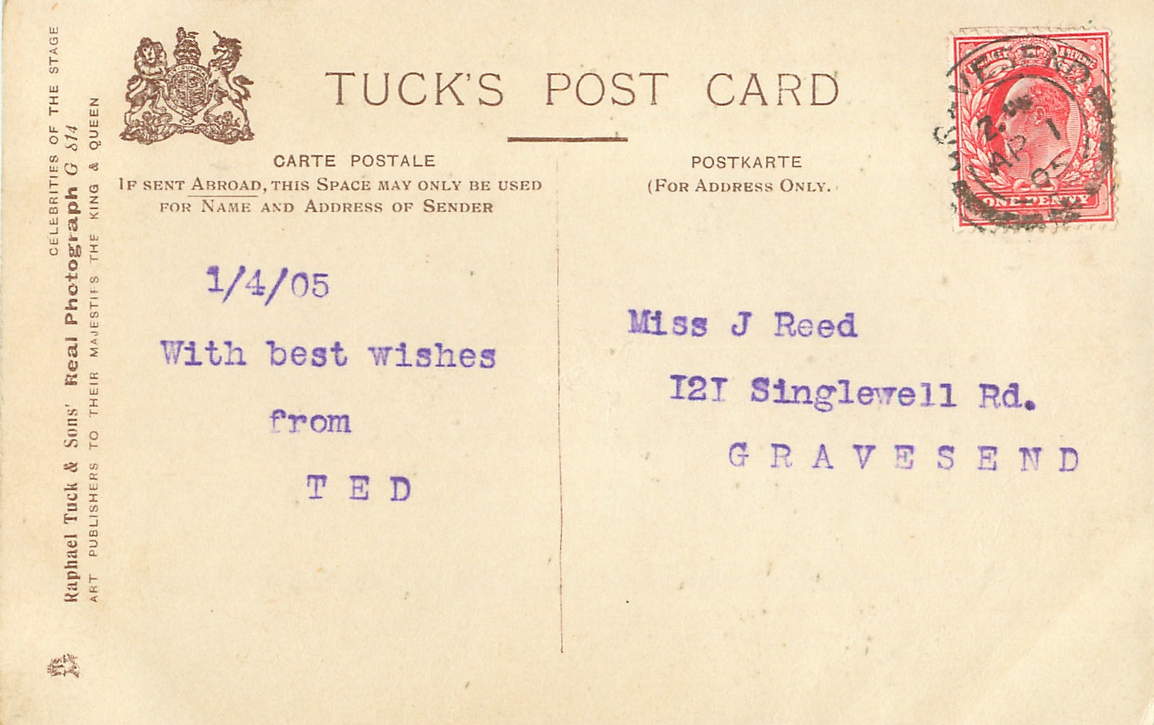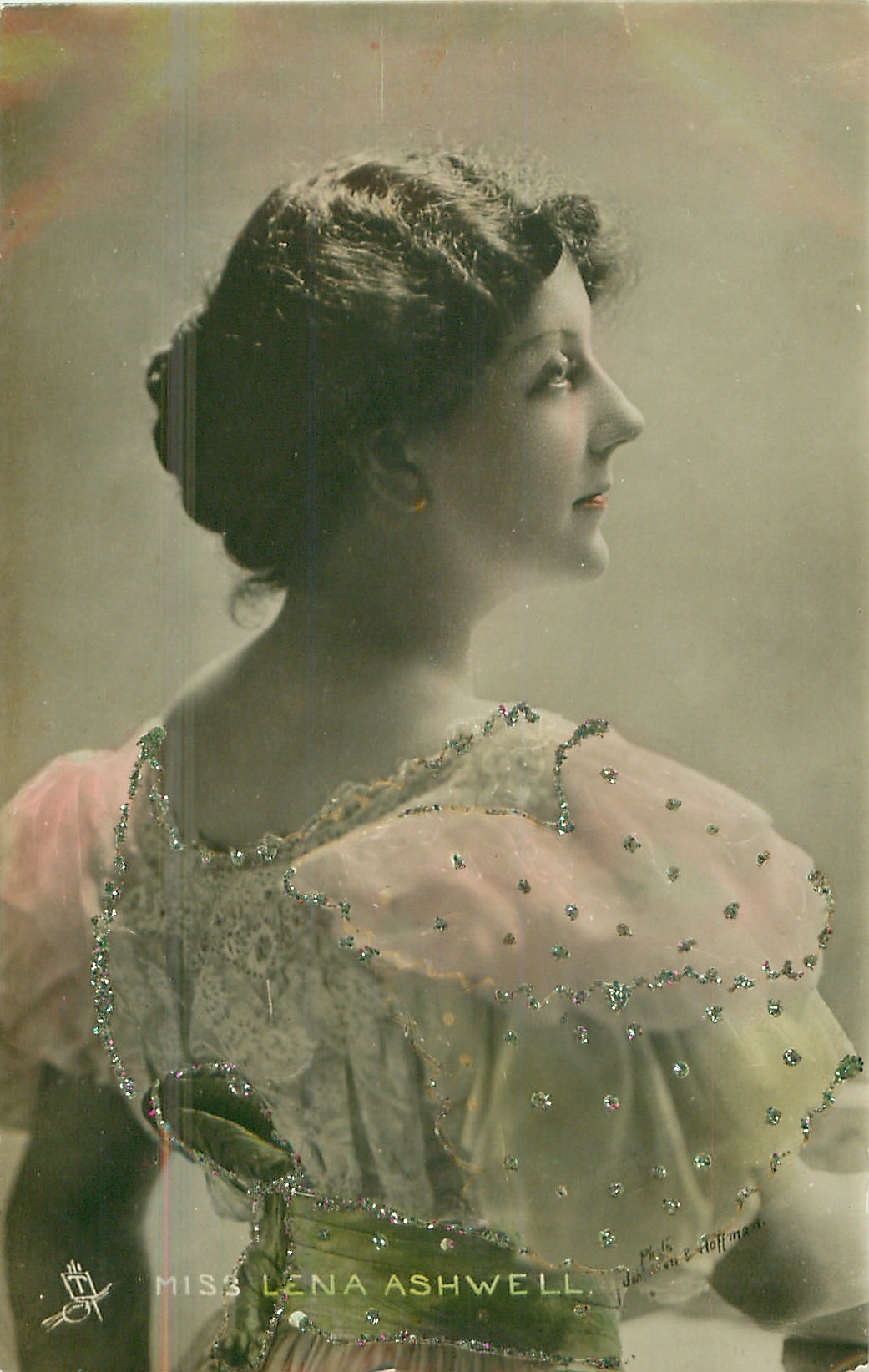 PHOTO JOHNSTON & HOFFMAN, hand-coloured, same image P814 Lena Ashwell (1872-Eng-1957) in "The Pharisee " 1891; in "King Arthur" 1895; was Prince of Wales in Richard III Lyceum Th. 1896