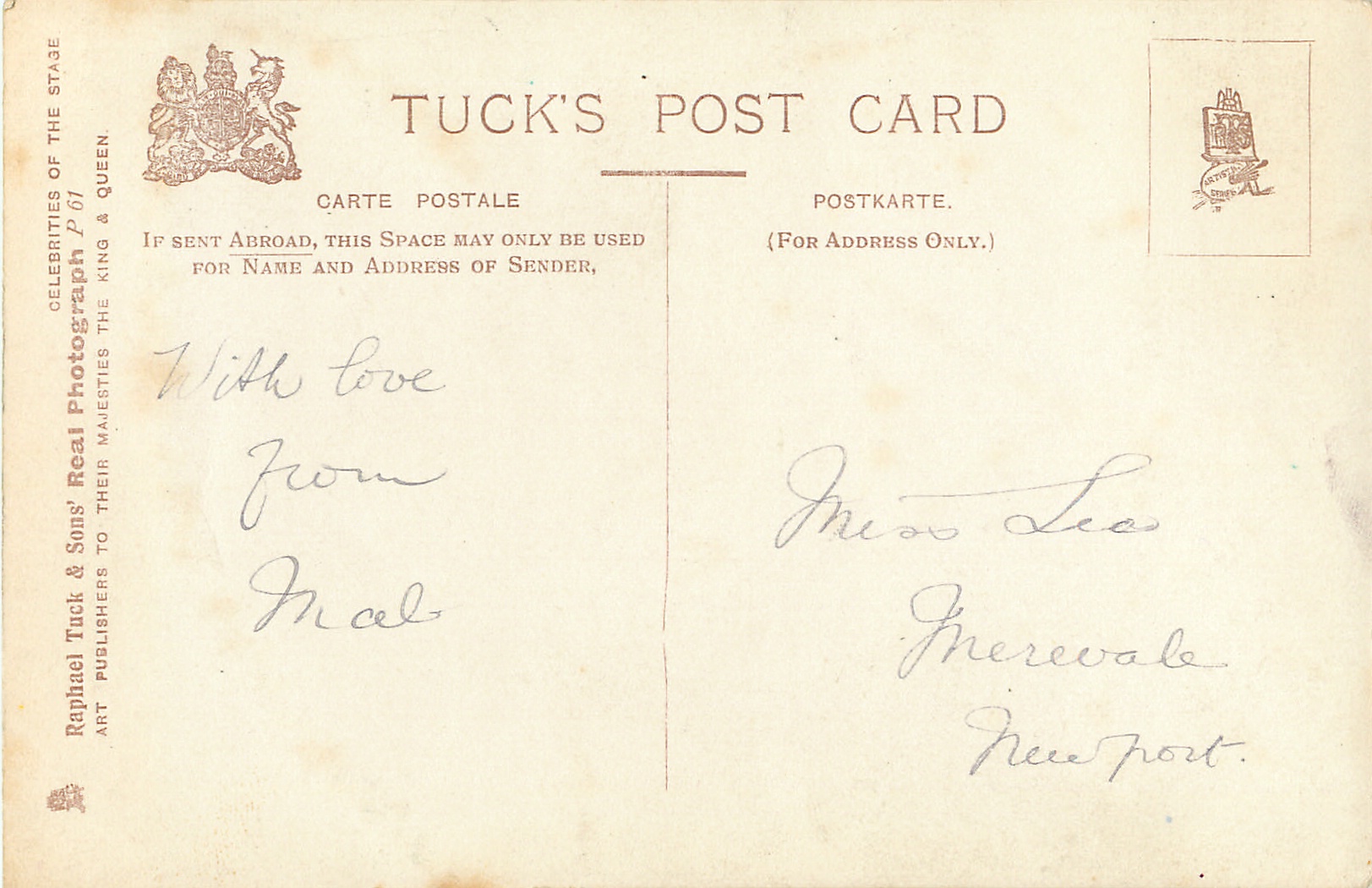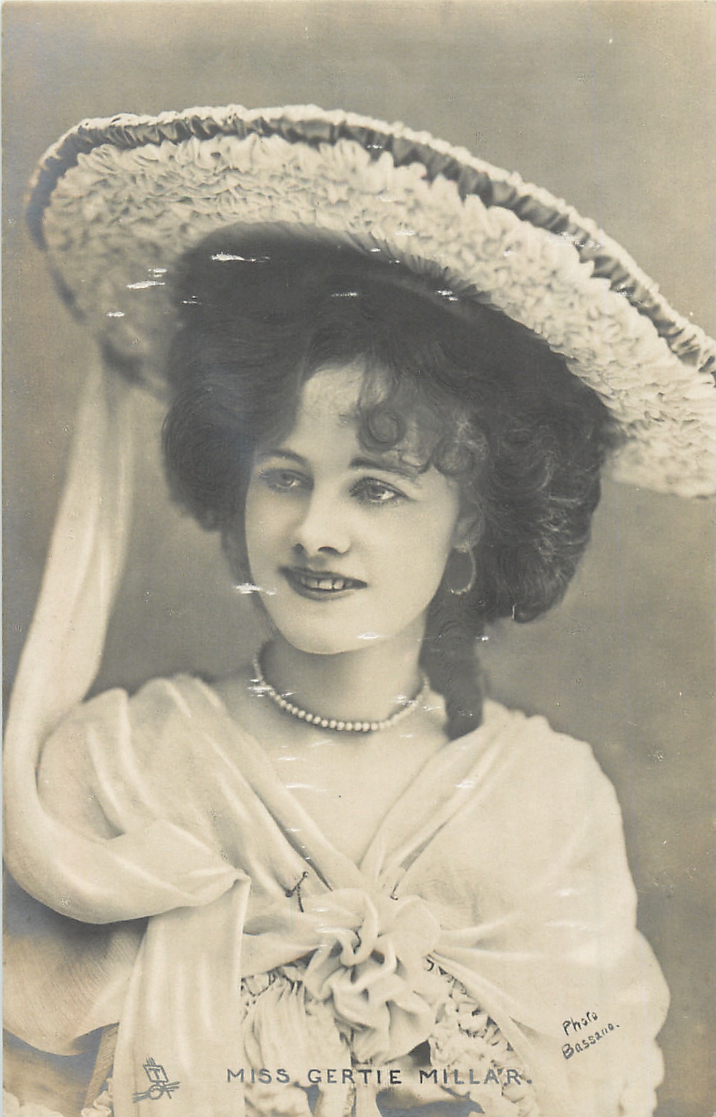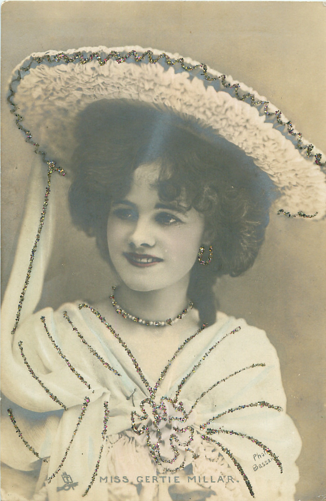PHOTO BASSANO, hand-coloured & glittered, same image G61 Gertie Millar (1879 Eng.-1952 Eng.) was Mitzi in "The Girls of Gottenberg" Musical Play Gaiety Th. London 1907 (303)