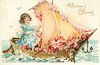 AFFECTION'S OFFERING girl sails boat full of blossom image*