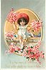 IT IS THE MORN OF VALENTINE, AND SOFTLY STEALS MY HEART TO THINE oval insert, girl sits on wall holding up red flowers