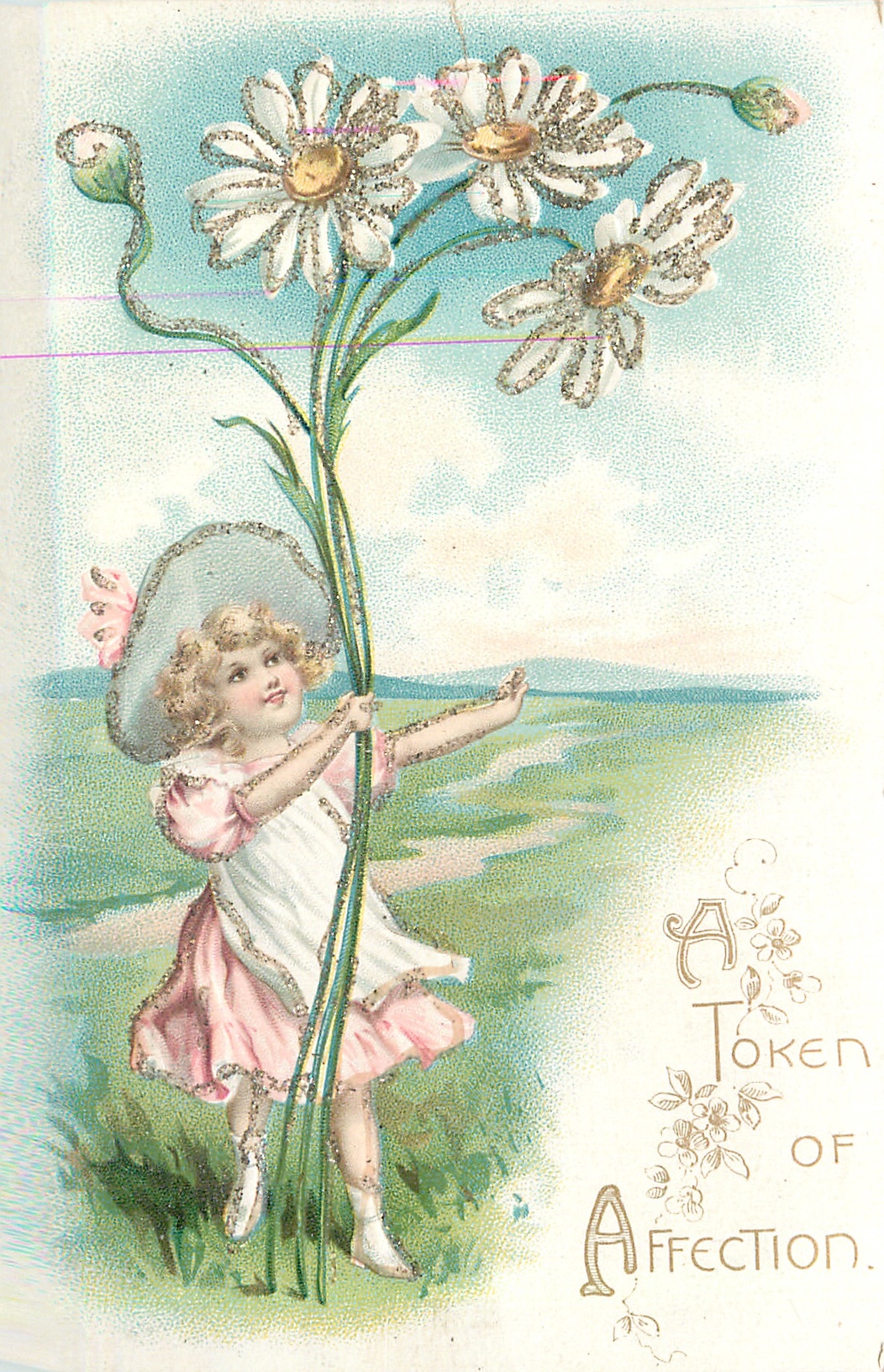 A TOKEN OF AFFECTION girl holds exaggerated daisies
