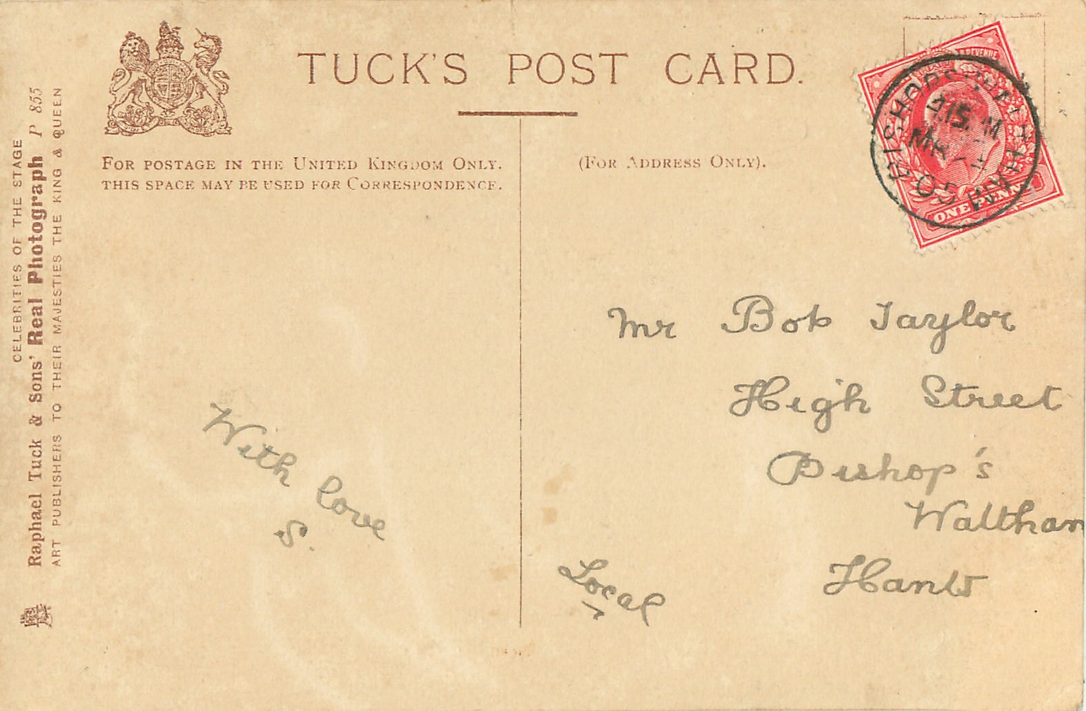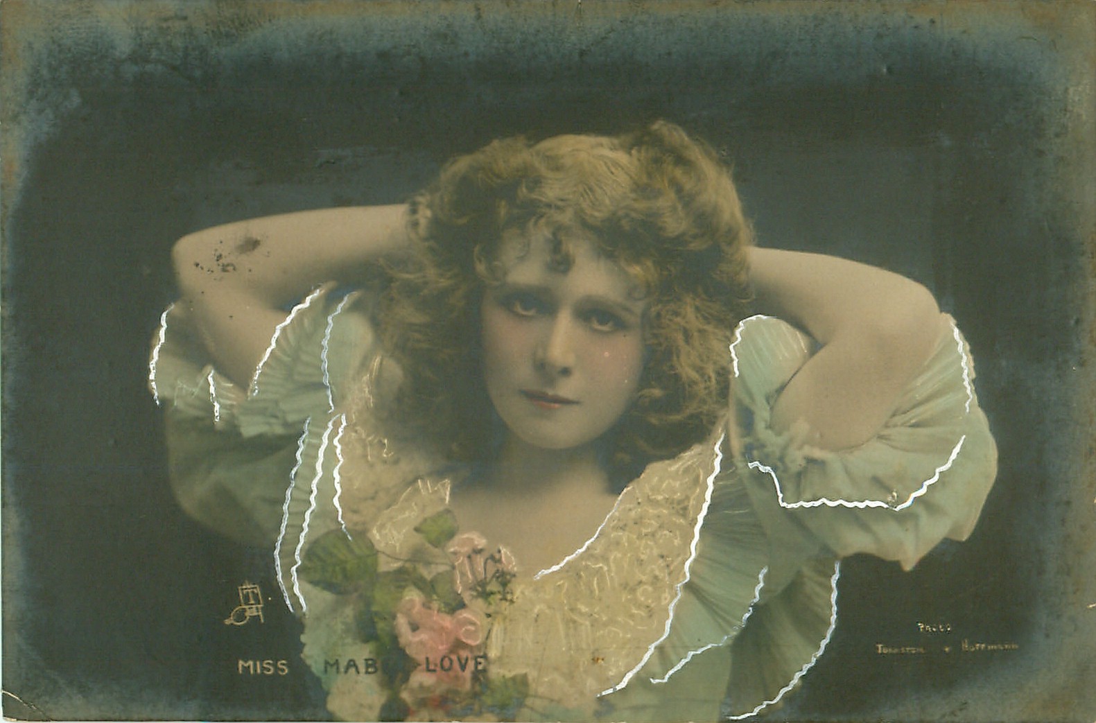 PHOTO JOHNSTON & HOFFMAN, hand-coloured Mabel Love was in "Soldier's Wedding" 1906; in "Follies Bergere" in Paris.