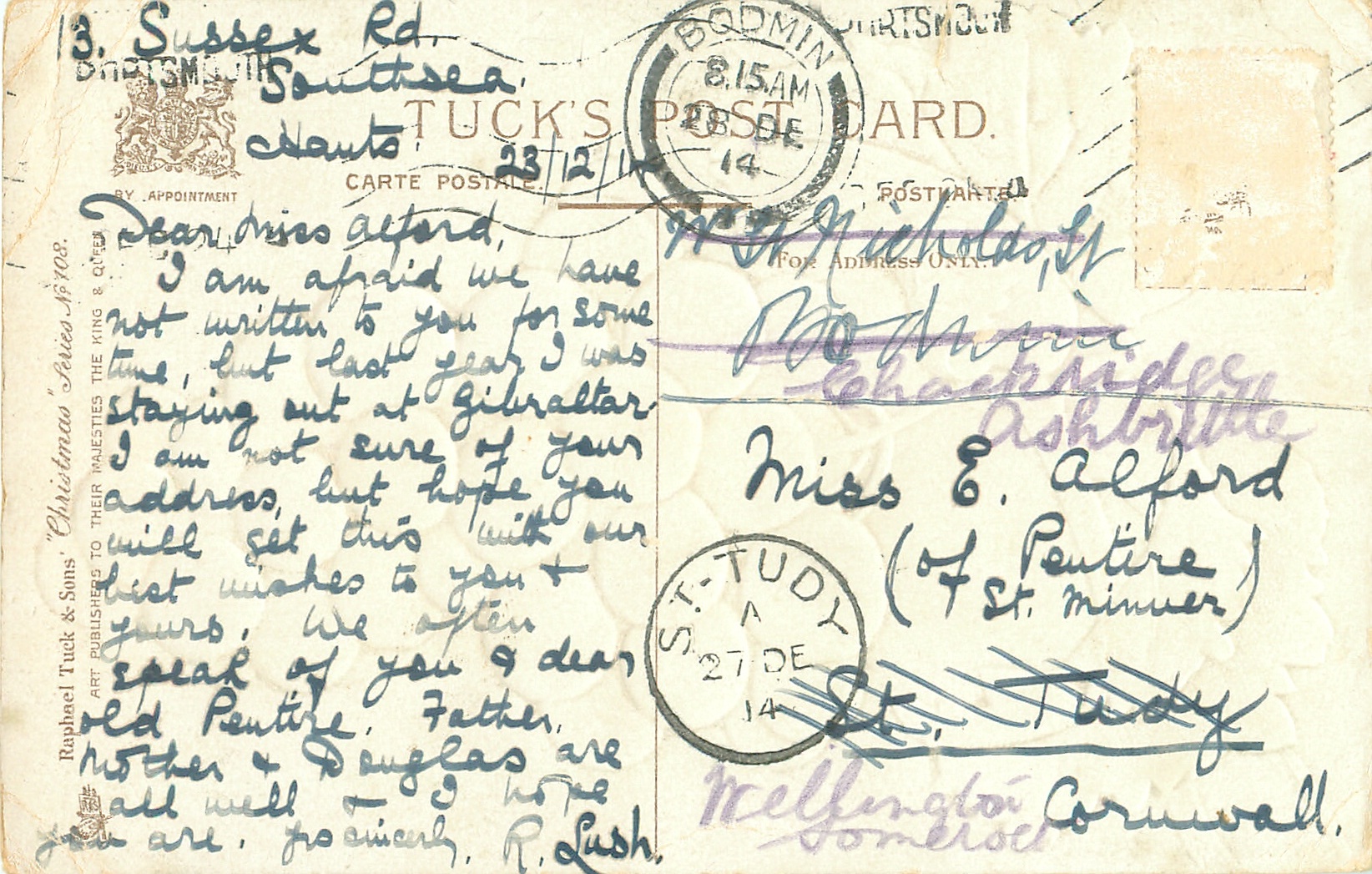 embossed, CHROMOGRAPHED IN SAXONY (in stamp box), same image BIRTHDAY 109 & not Christmas, in 6958