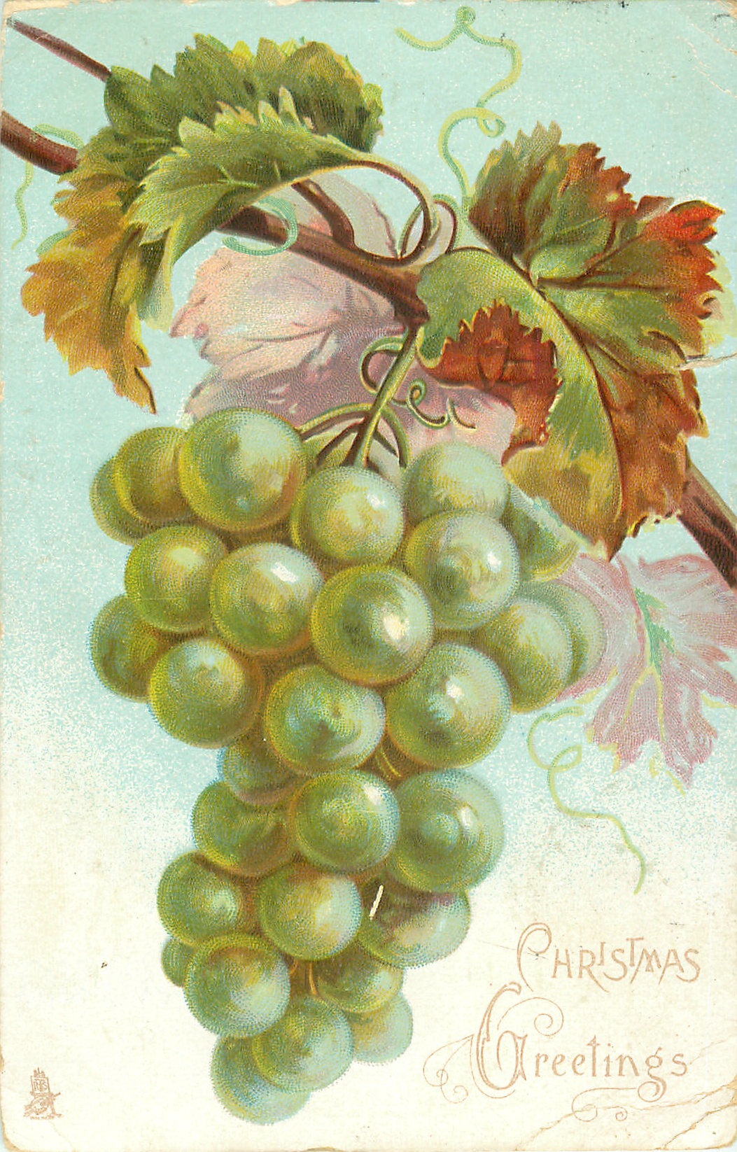 CHRISTMAS GREETINGS bunch of green grapes hanging from vine