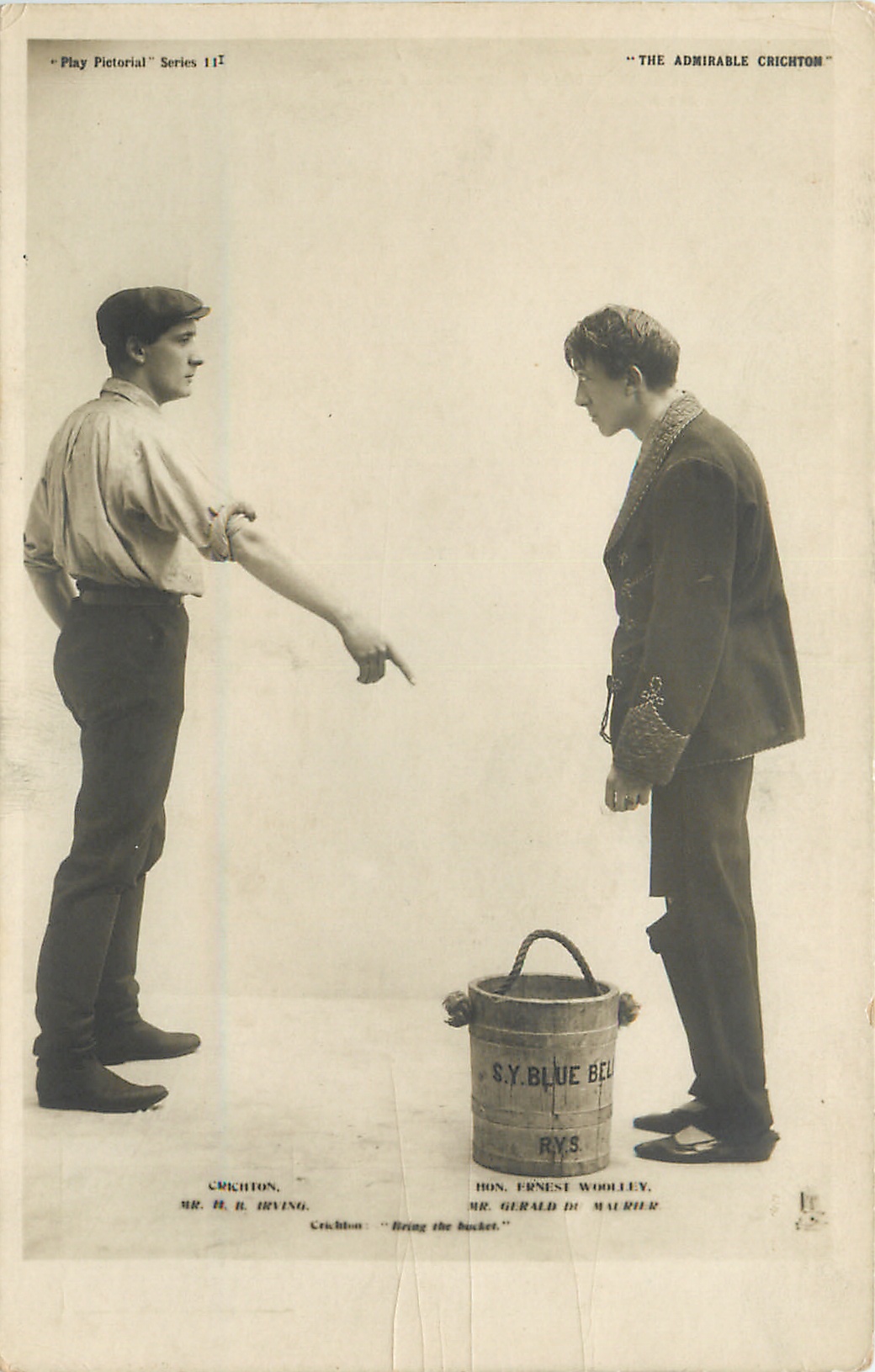 CRICHTON, MR. H.B. IRVING, HON. ERNEST WOOLEY, MR. GERALD DU MAURIER. CRICHTON "BRING THE BUCKET"
