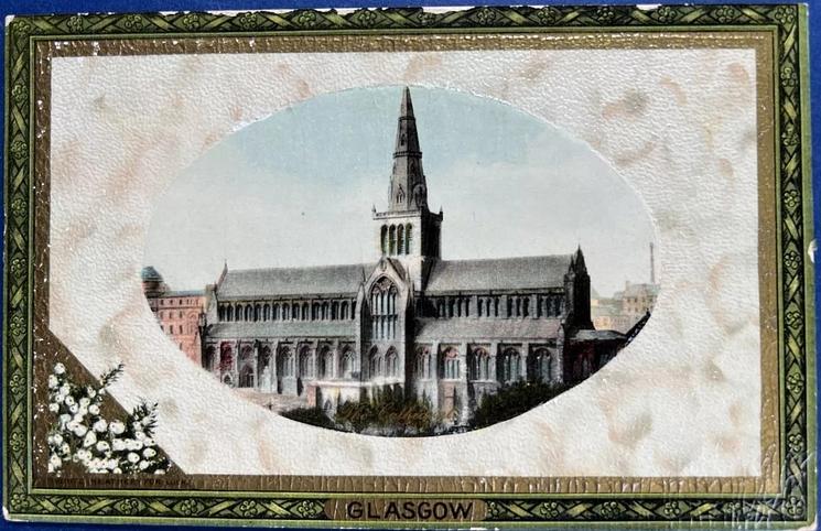 gilt, FRAMED GRANITE, (textured card surface surrounds glossy inset), PROCESSED IN SAXONY (in stamp box), WHITE HEATHER FOR LUCK small letters lower left
