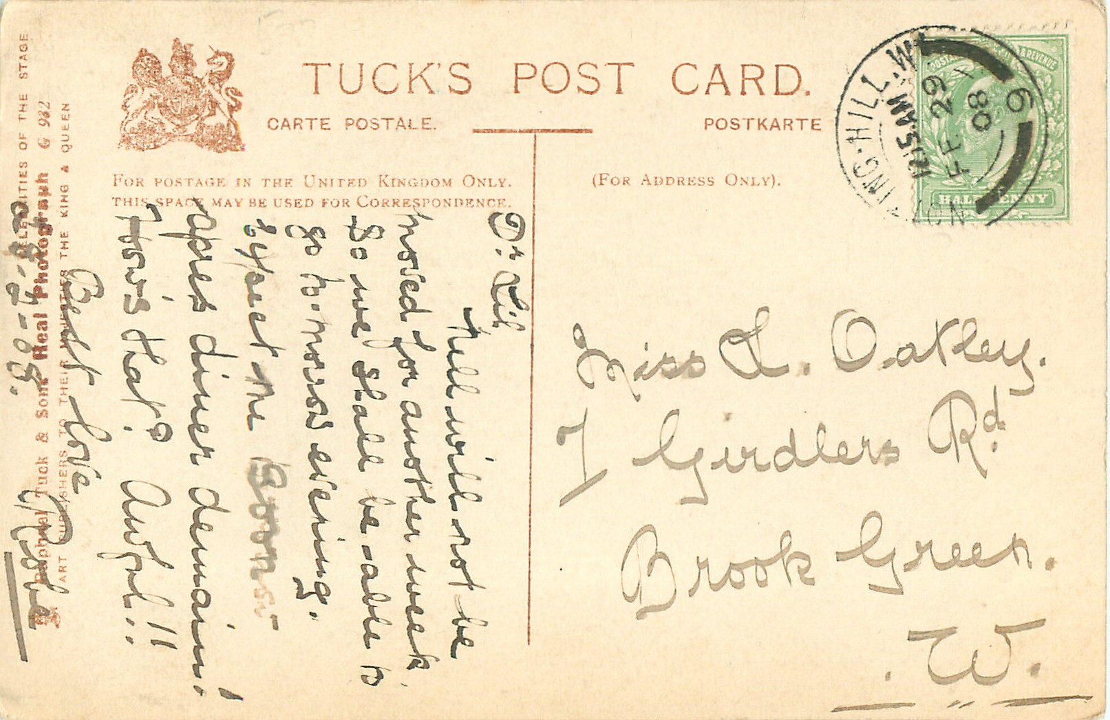 hand-coloured Married to Johnston Forbes Robertson 1900 & was in shows with him. Cleopatra to his Caesar; Ophelia to his Hamlet;