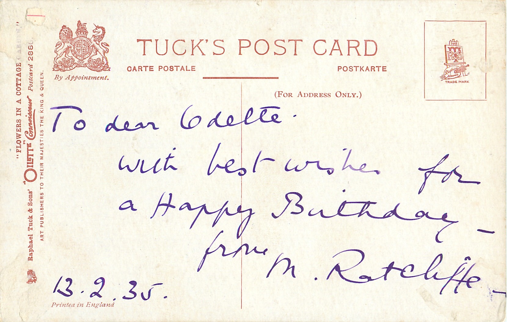 OILETTE CONNOISSEUR, PRINTED IN ENGLAND, come with & w/o garden related quotes, same images OILETTE or OILFCSIM 10055, listed in TUCK'S TRAVELOGUES (USA?1905)