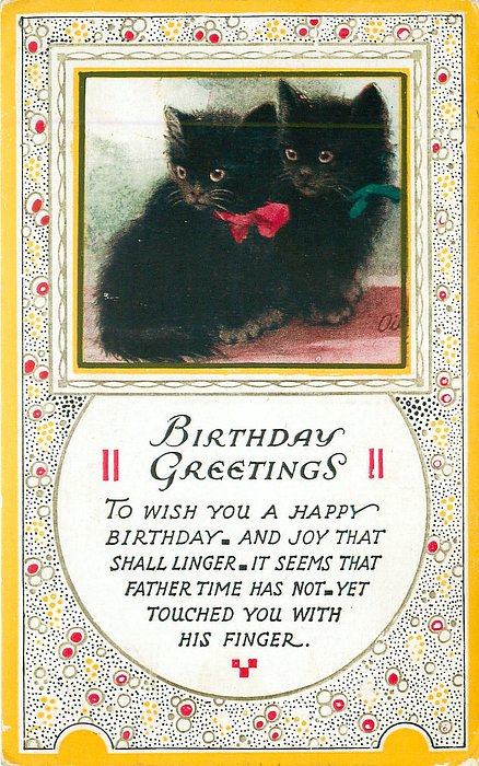 BIRTHDAY GREETINGS, inset two black kittens