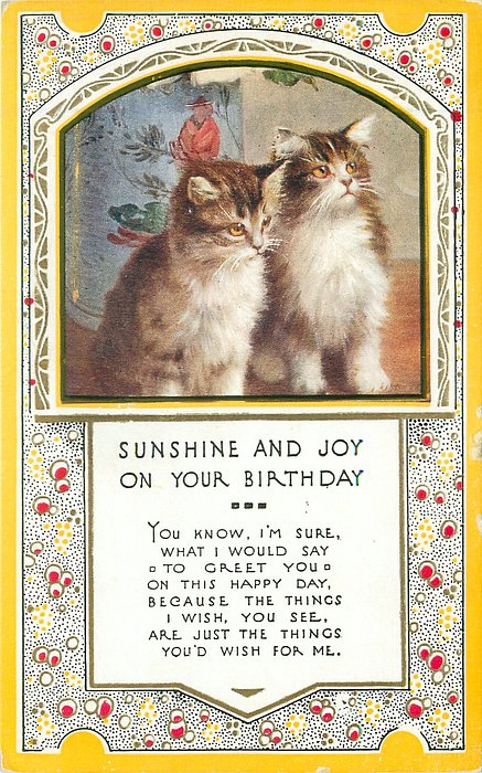 SUNSHINE AND JOY ON YOUR BIRTHDAY, inset two tabby kittens with white fronts