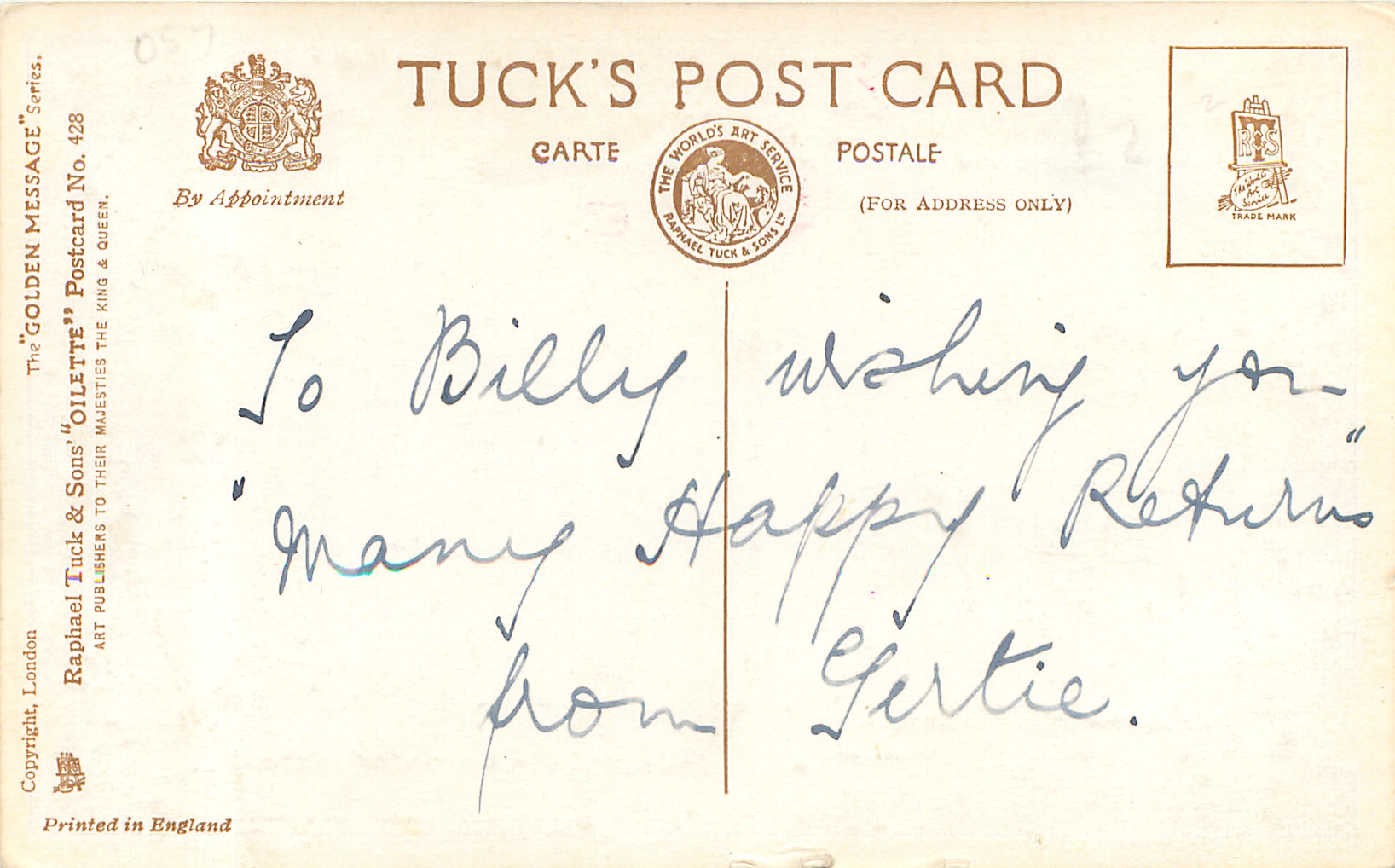 gilt, OILETTE, PRINTED IN ENGLAND, COPYRIGHT LONDON, very thick cards, same insets used for pairs of cards with different wording, yellow border design