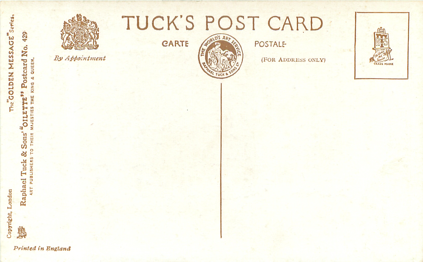 gilt, OILETTE, PRINTED IN ENGLAND, COPYRIGHT LONDON, very thick cards, same insets used for pairs of cards with different wording, green border design