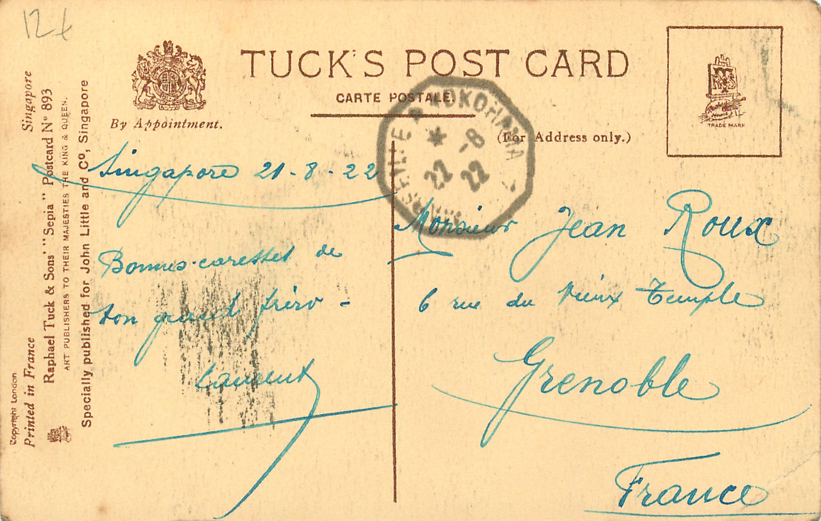 SEPIA green or sepia back, PRINTED IN ENGLAND or PRINTED IN FRANCE with or w/o COPYRIGHT ENGLAND with or w/, PUBLISHED FOR KELLY WALSH,or JOHN LITTLE, or WHITEWAY LAIDLAW OR C.A. RIBEIRO or KIM & CO. or G.H. KIAT(green back), 6 backs