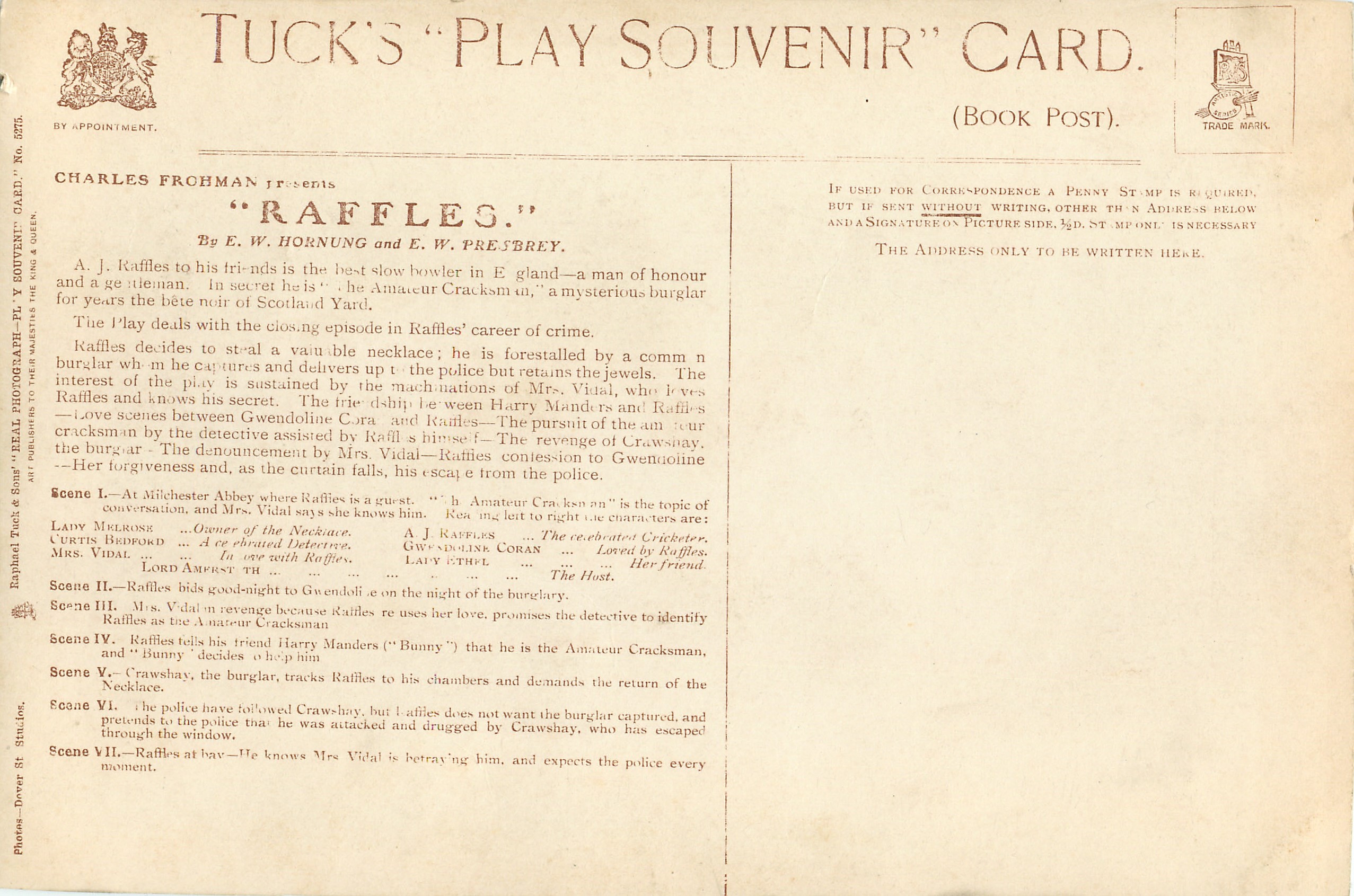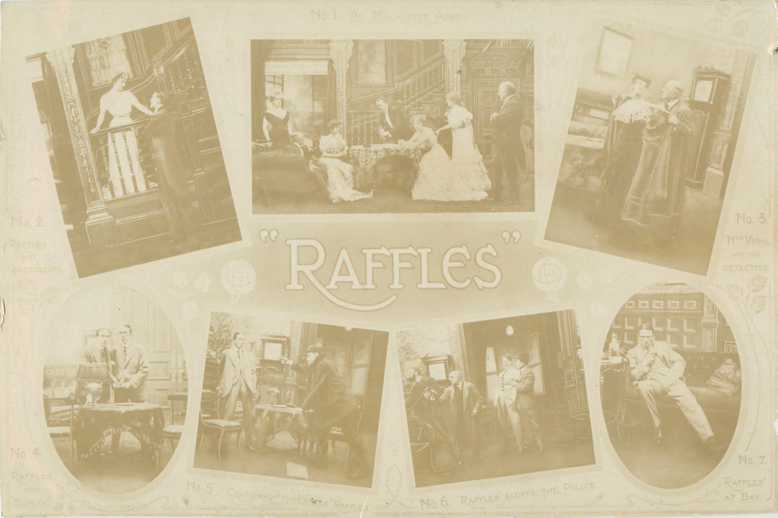 RAFFLES seven numbered insets of scenes from play