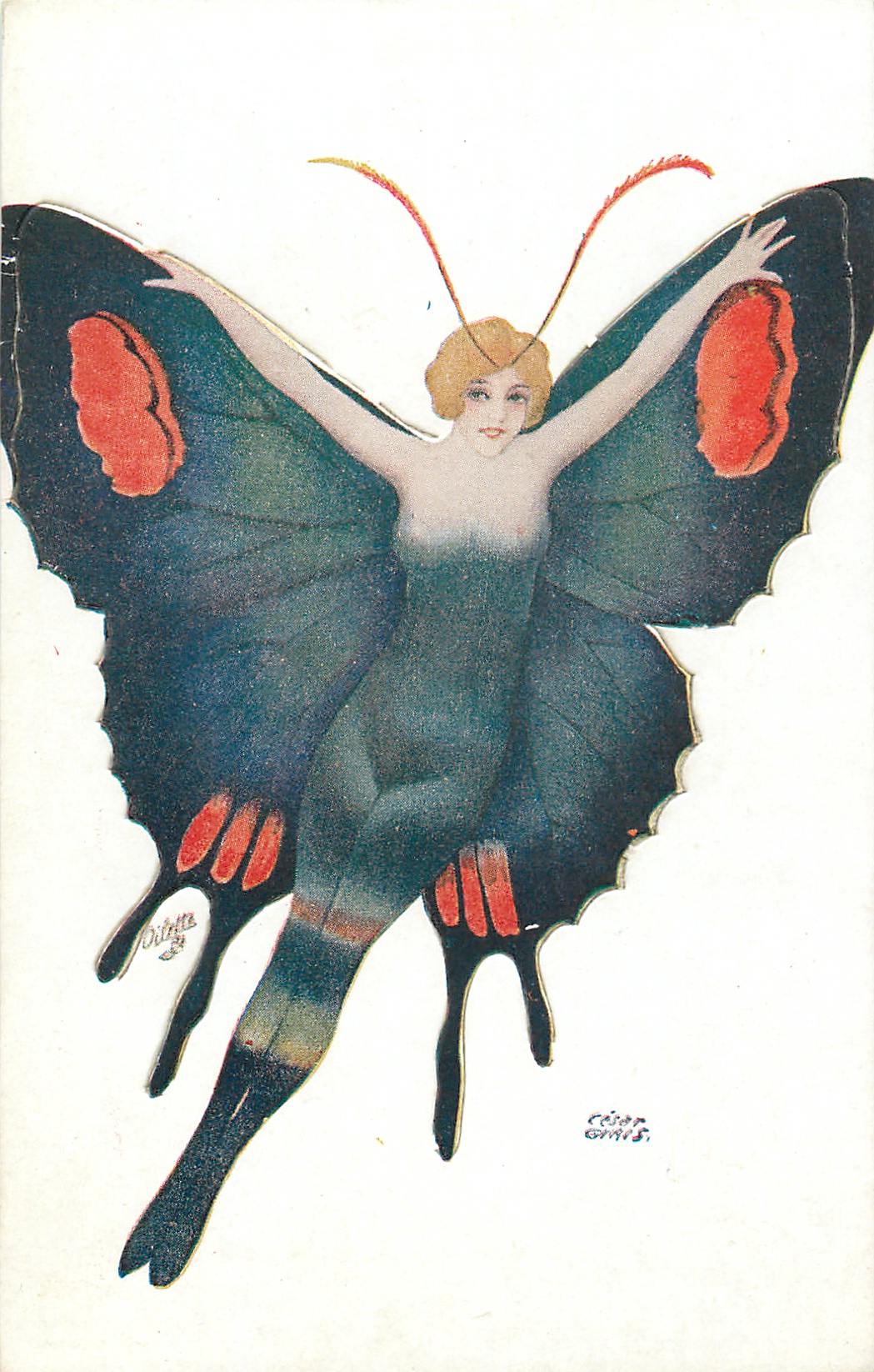 MADAME BUTTERFLY ON THE WING with wings cut out to spread, push-outs