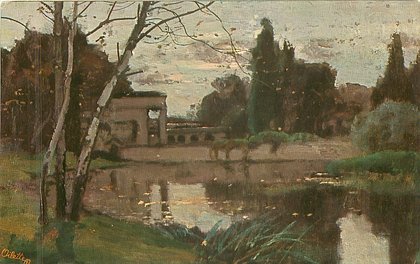 OILETTE CONNOISSEUR, PROCESSED IN BAVARIA, same images German backs OILETTE 824/825 DER DEUTSCHE WALDE, artists signature on some cards, usually indistinct, listed in TUCK'S TRAVELOGUES (USA?1905)