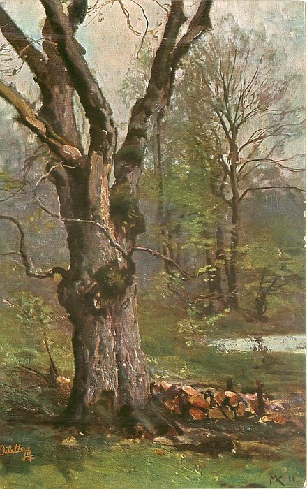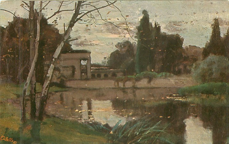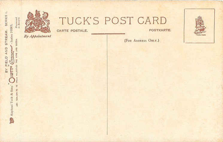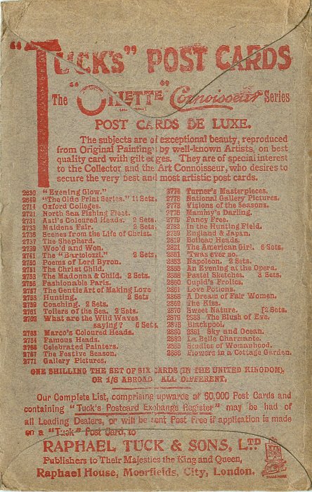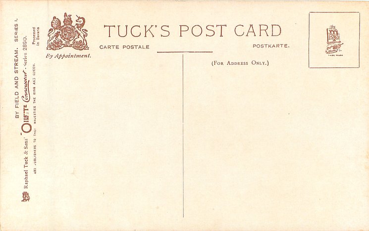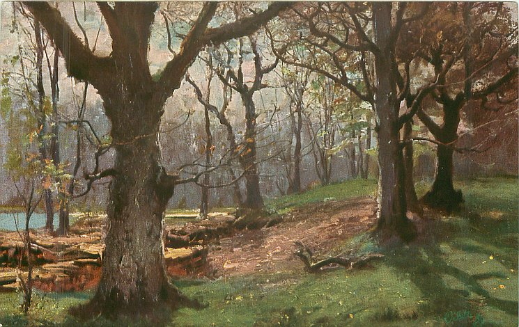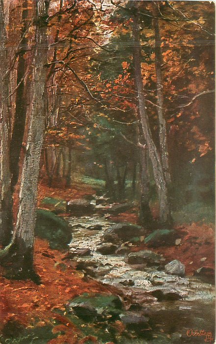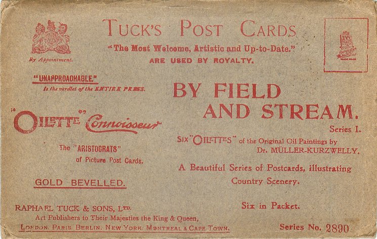 OILETTE CONNOISSEUR, PROCESSED IN BAVARIA, same images German backs OILETTE 824/825 DER DEUTSCHE WALD, artists signature on some cards, usually indistinct, listed in TUCK'S TRAVELOGUES (USA?1905)