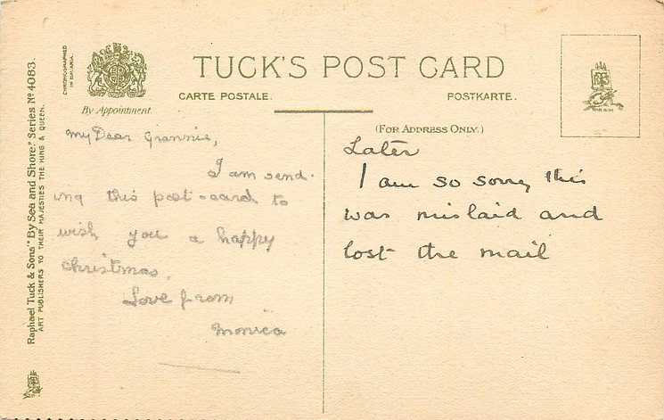OILETTE, PRINTED IN ENGLAND, 2 backs, listed in 1908/1909 & 1911/1912 & 1913/1914 Postcard Catalogues